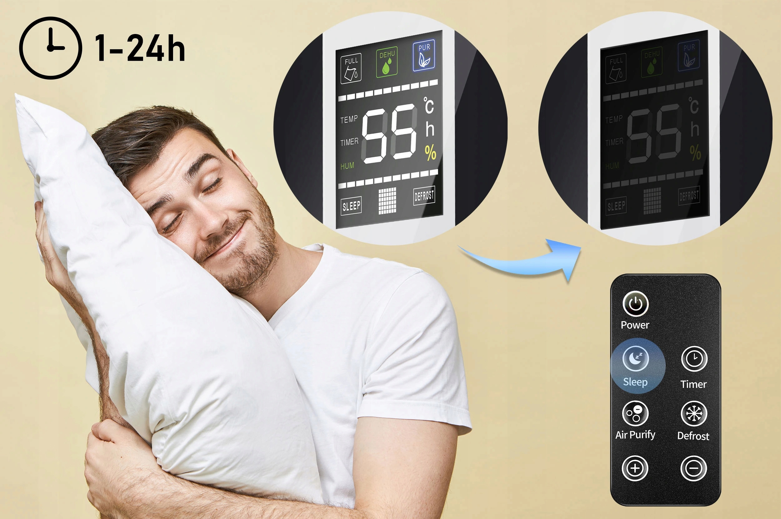 Функция сон позволяет отключить дисплей. Благодаря этому решению осушитель может работать, не излучая света.