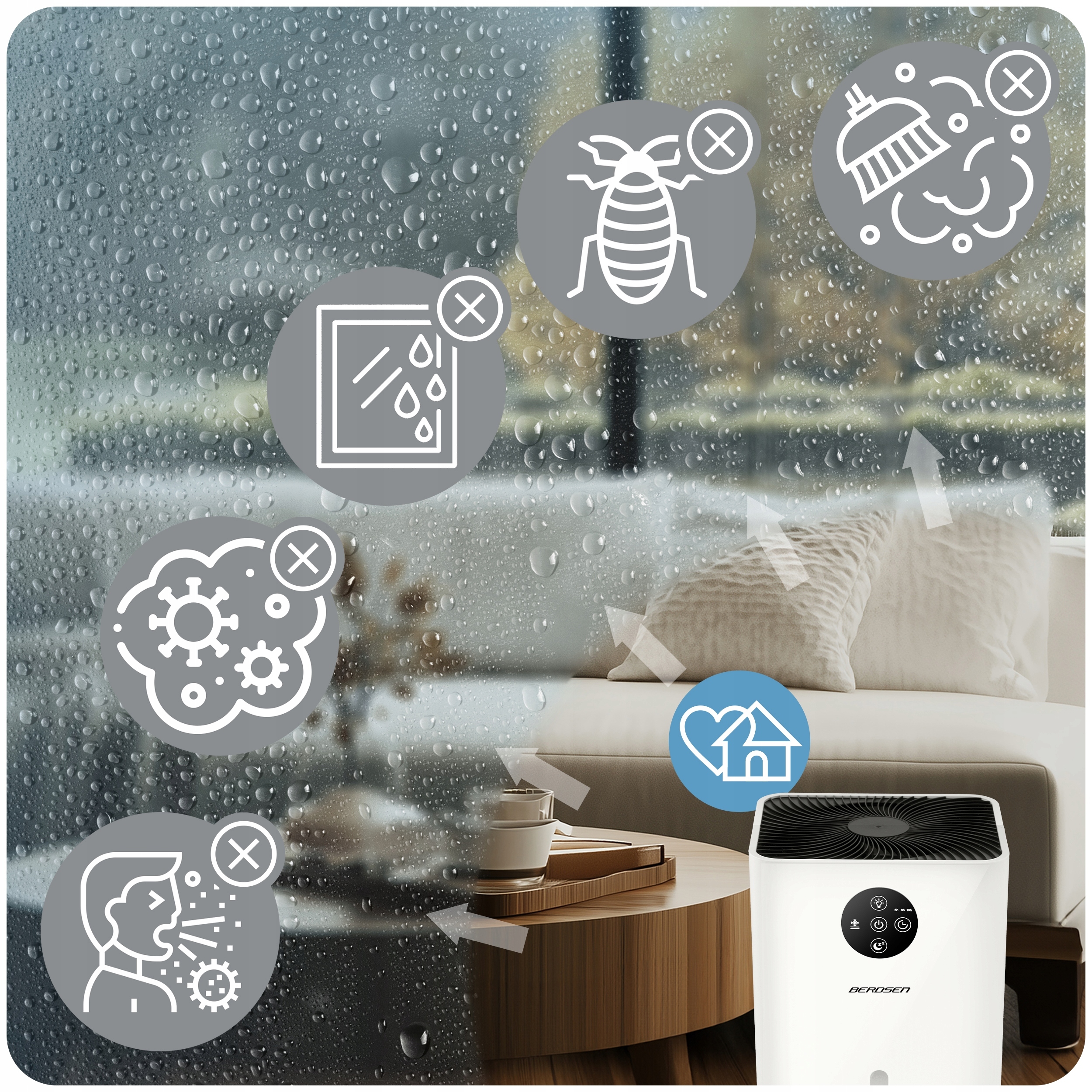 ВОЗДУШНЫЙ ОСУШИТЕЛЬ ВЛАЖНОСТИ АБСОРБЕР SMART TUIET 34дБ LED Berdsen 1.8L