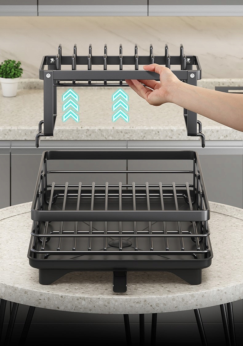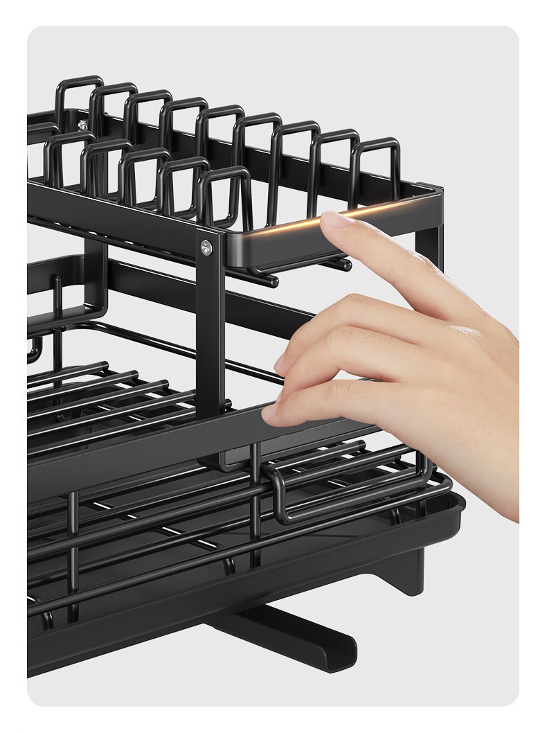 СУШИНКА ДЛЯ ПОСУДУ З ДВОМА ГОРИЗОНТАЛЬНИМИ СТЕКАМИ, ЧОРНА