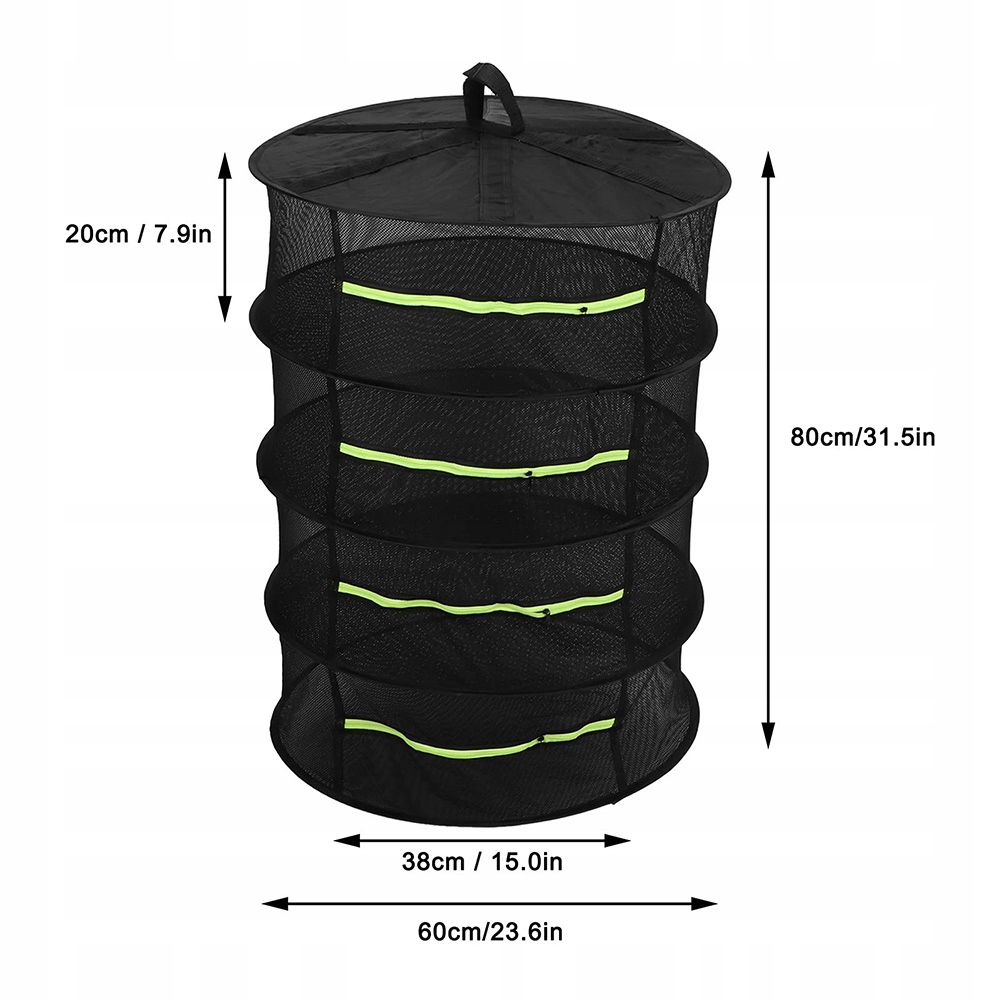 Большая вместимость --- Сетчатая травосушилка для сушки трав, диаметр в разложенном виде 60 см, высота каждого слоя 20 см. На каждом уровне достаточно места для сушки множества растений и трав. Вы можете выбрать количество слоев в соответствии с вашими потребностями. При использовании вы также можете отрезать лишние неиспользуемые ярусы внизу, чтобы сэкономить место.
