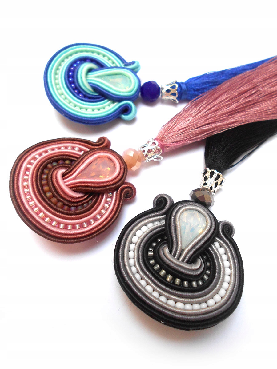 Выполнены из сутажных ниток розового и коричневого цвета, кристалла в центре и маленьких стеклянных бусин. Вся вещь пропитана, что существенно защищает от грязи. Спинка тщательно отделана фетром, подобранным по цвету.