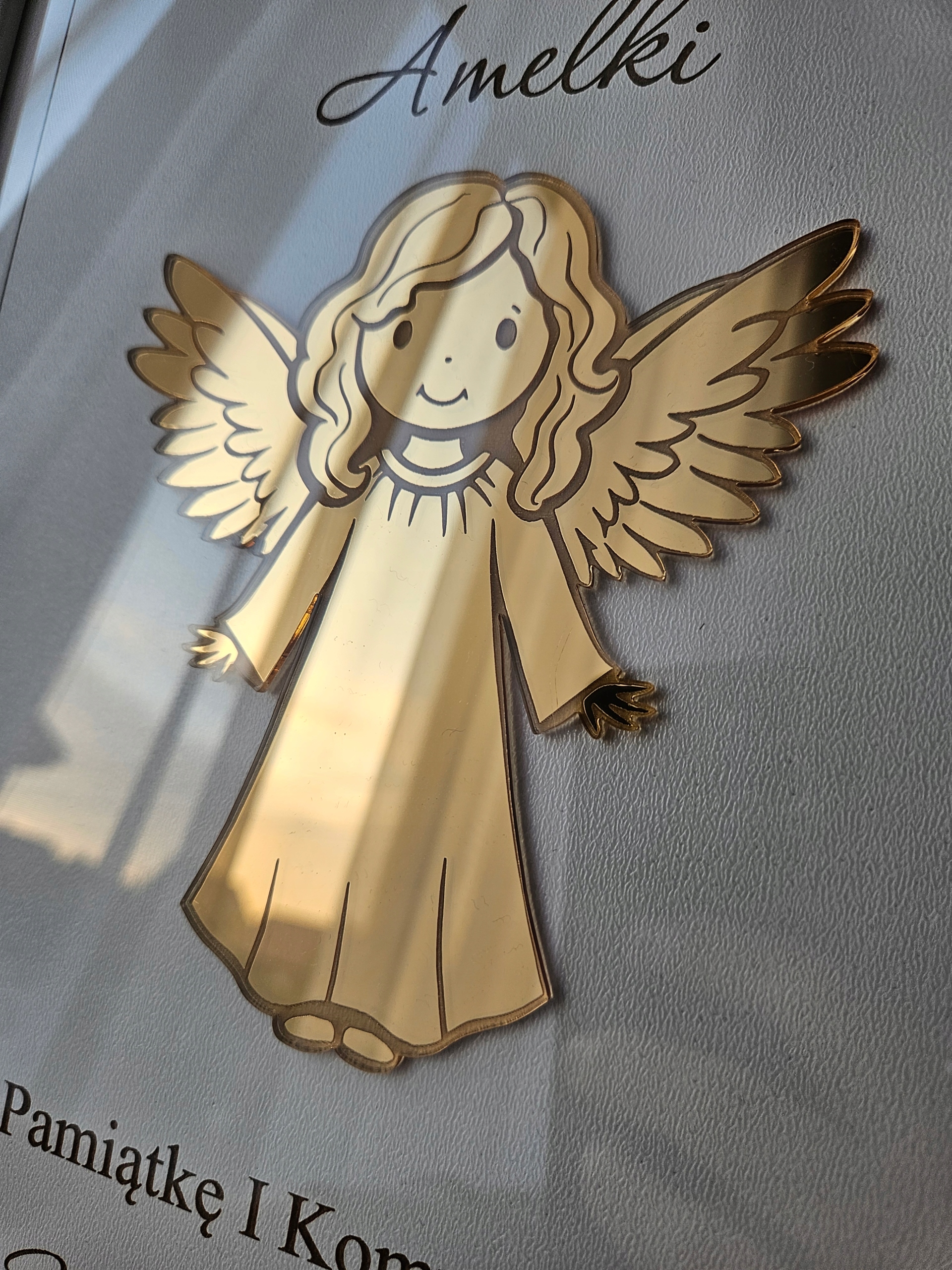 - Зеркало золотое акрил Ангел, вырезанное и выгравированное точным лазерным методом