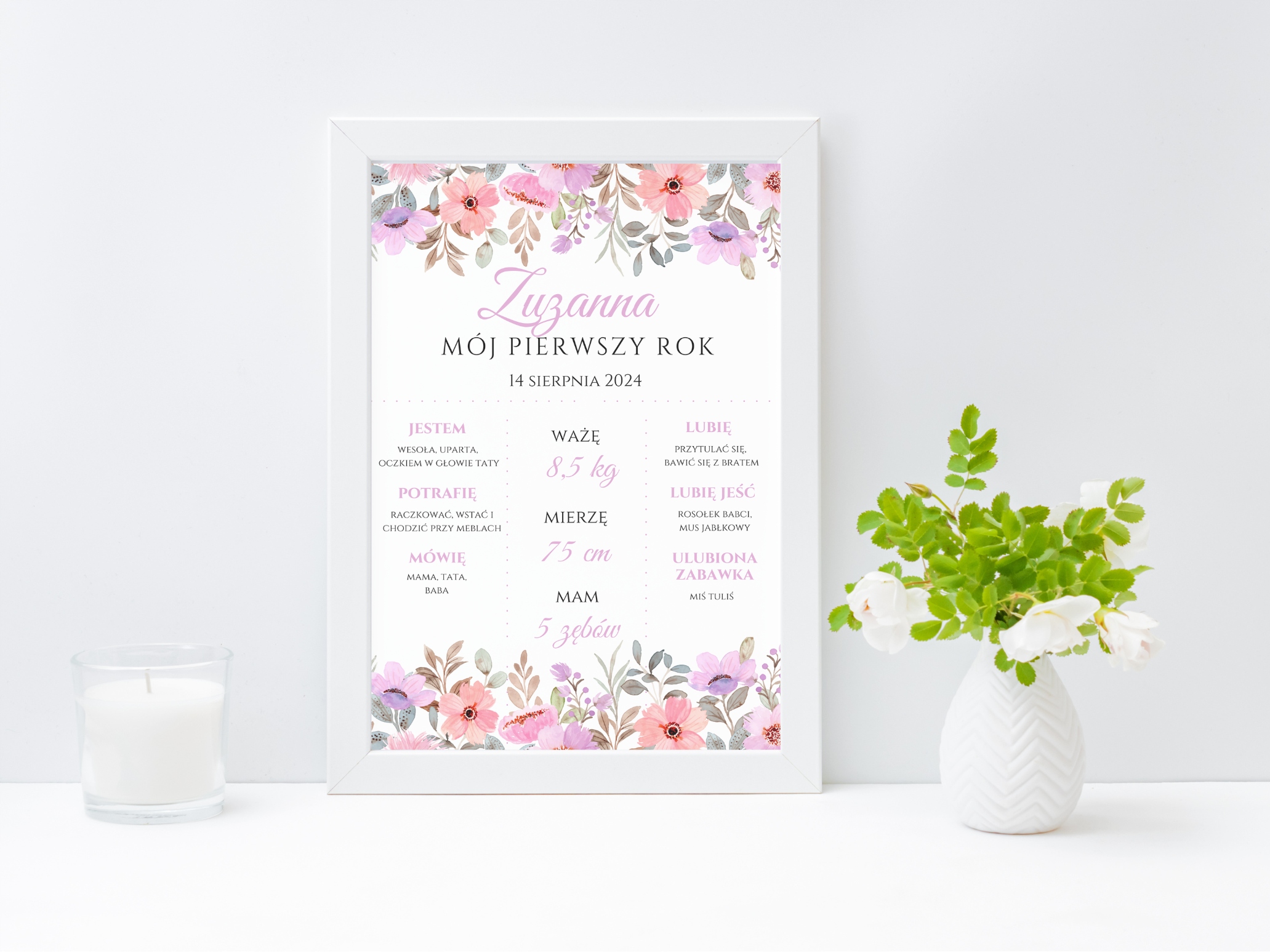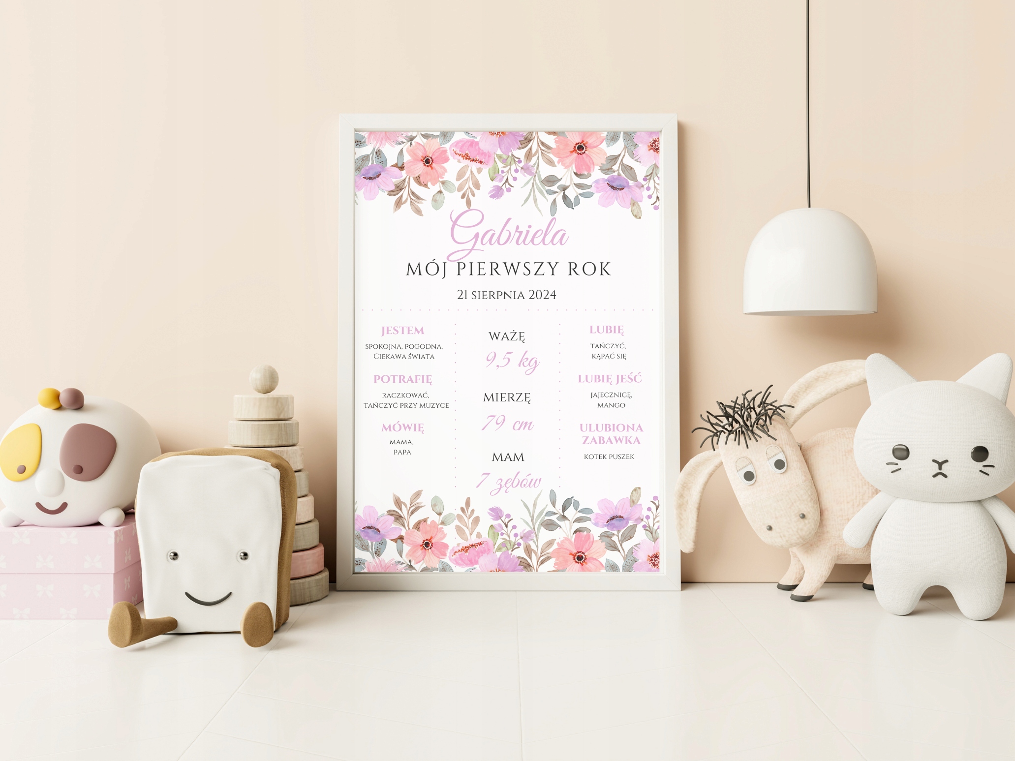 Запечатлейте волшебство первого дня рождения вашего ребенка с помощью нашего персонализированного плаката «Мой первый год». Это больше, чем просто украшение – это память на всю жизнь, которая украсит не только детскую комнату, но и гостиную, письменный стол или любое другое место в доме, а также идеально подойдет в качестве украшения на день рождения. !
