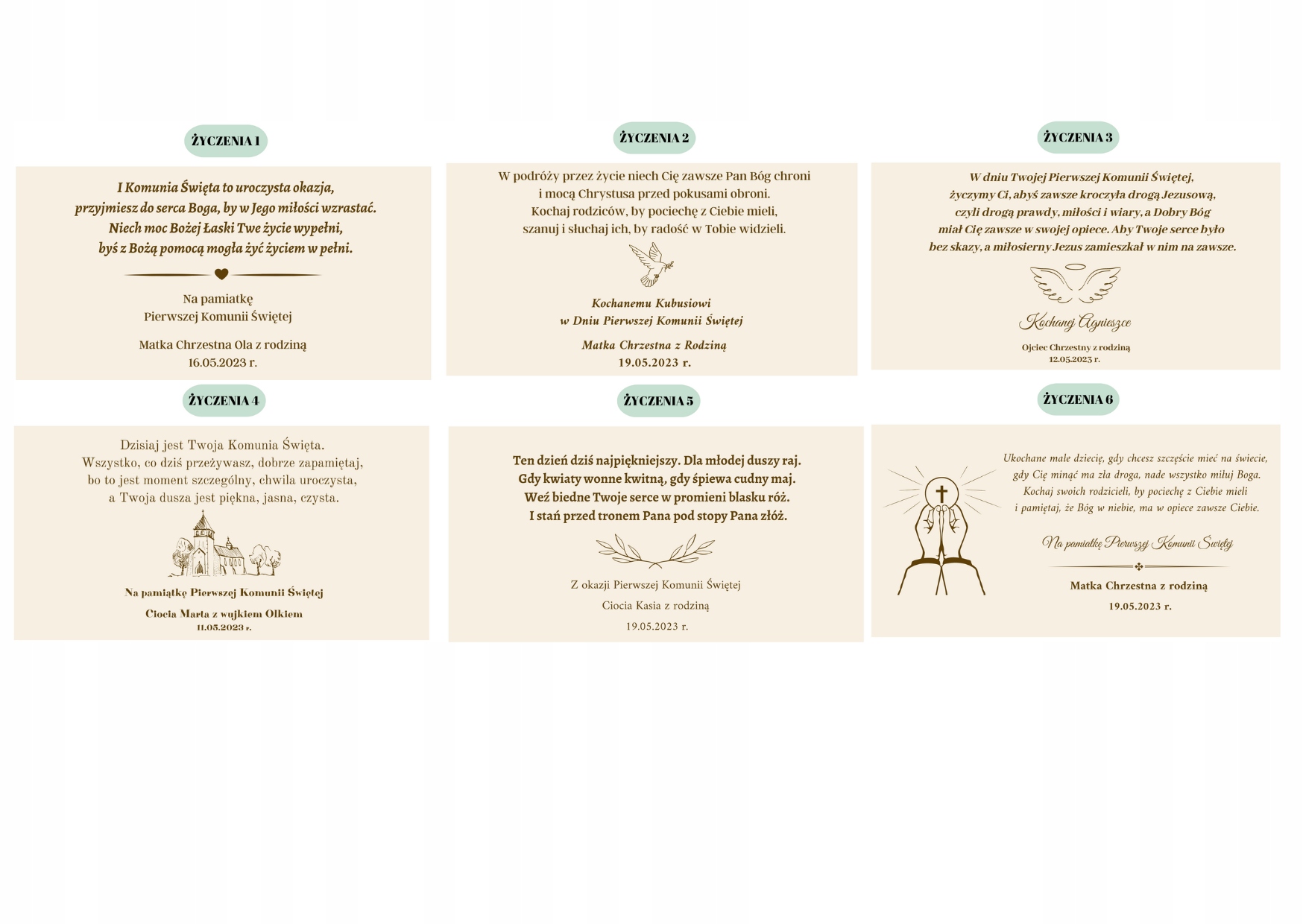 - Имена людей, выражающих пожелания (например, Крестная мать, дядя Дарек)