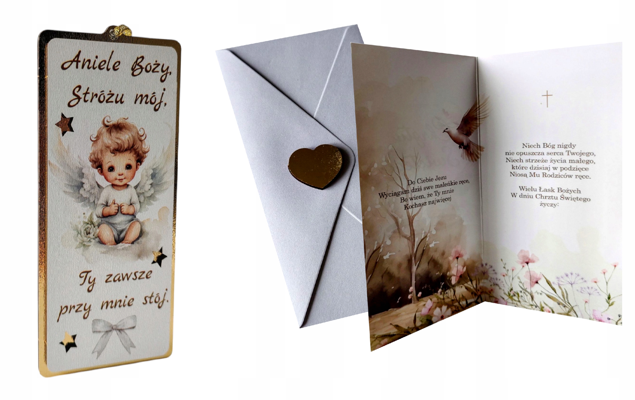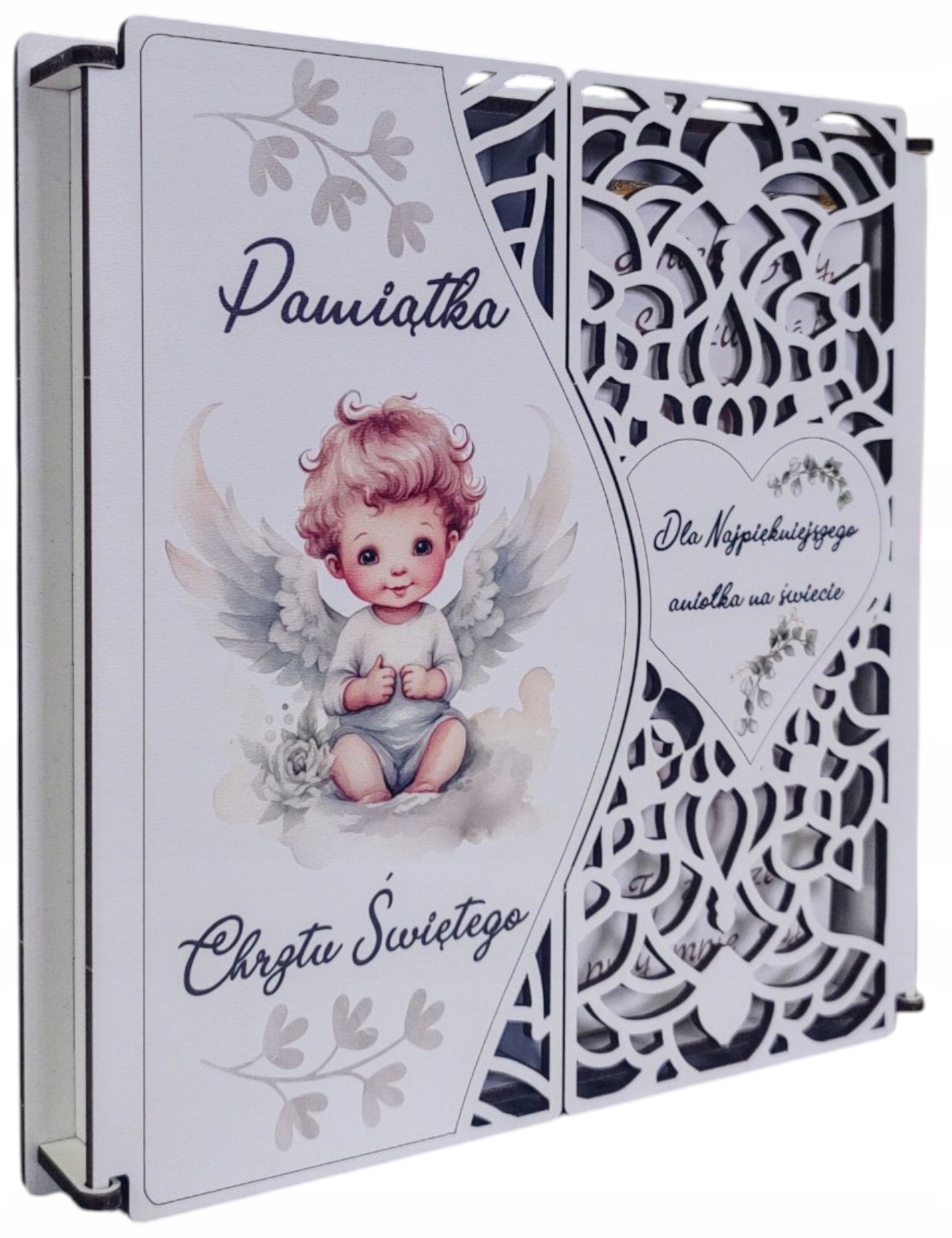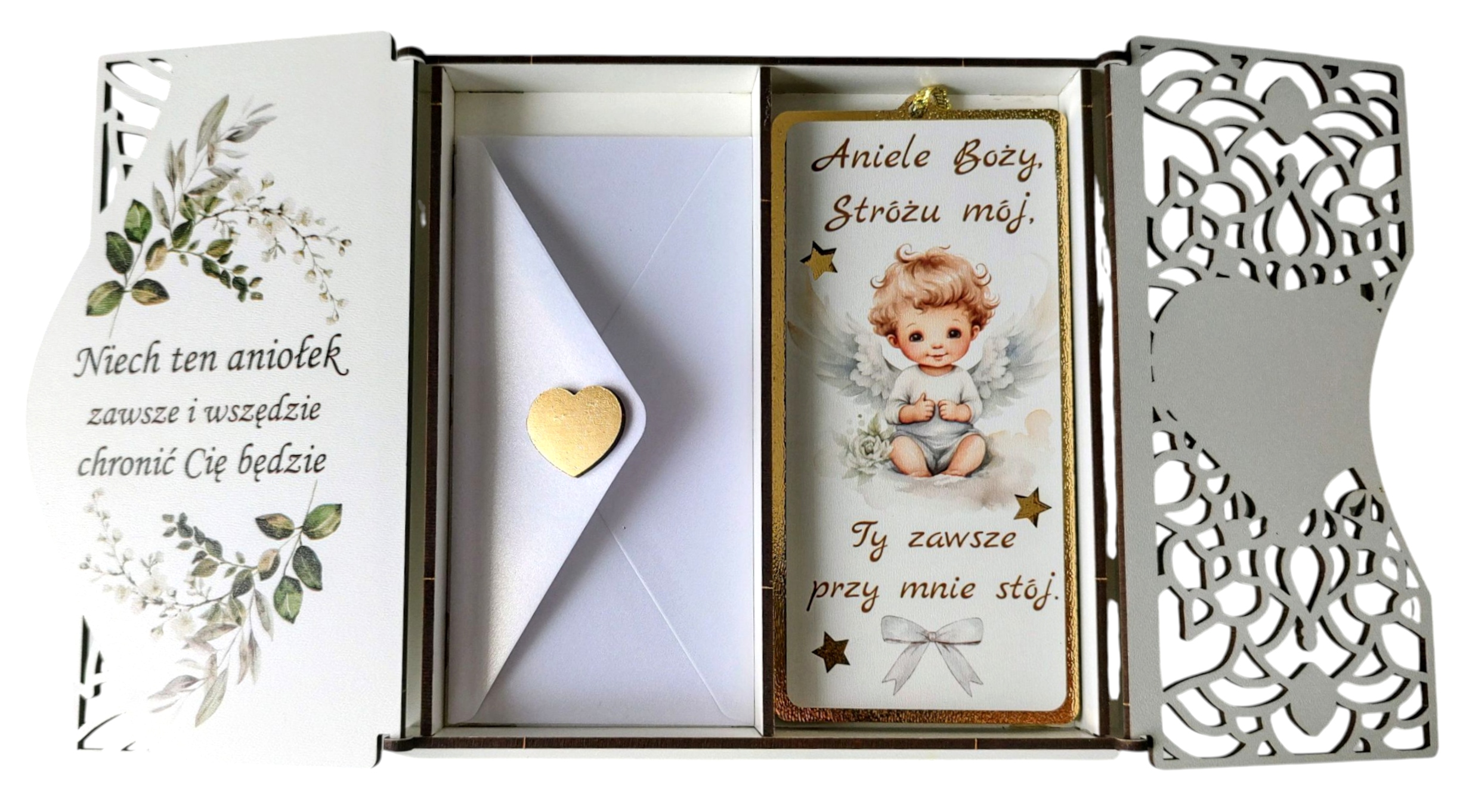 Сувенир Крещения Св. + Подвесной Ангел -Хранитель, деревянная коробка крещения