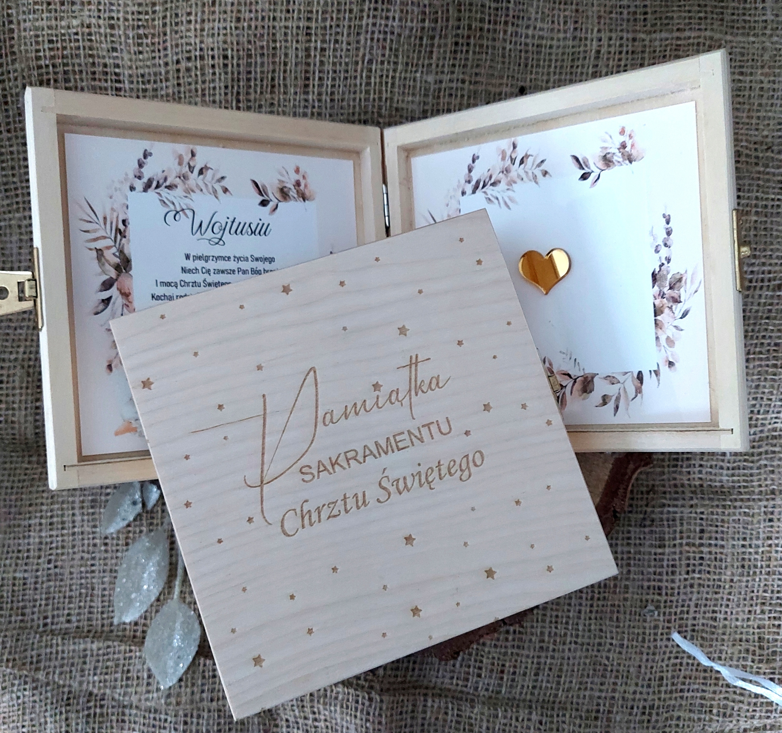 Деревянная шкатулка с индивидуальными пожеланиями и ЗОЛОТЫМ РОЗАРЕМ
