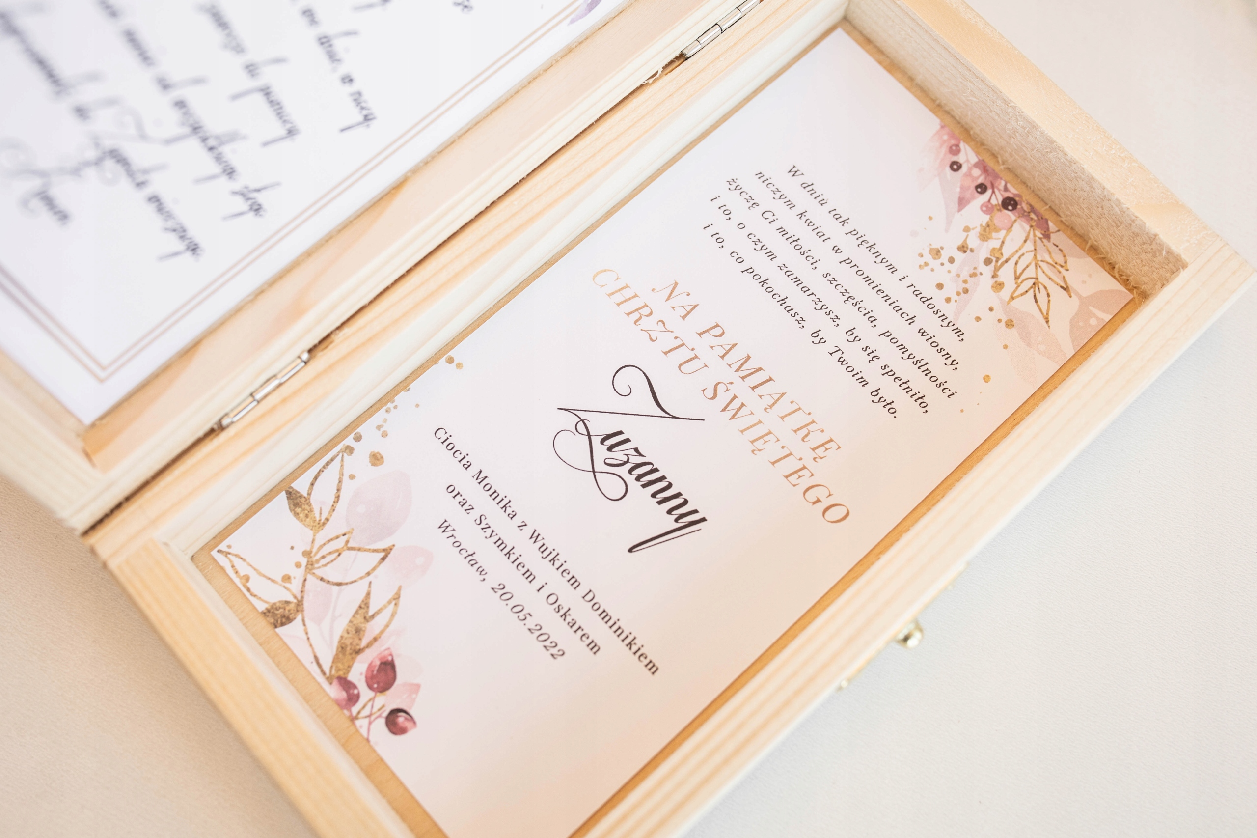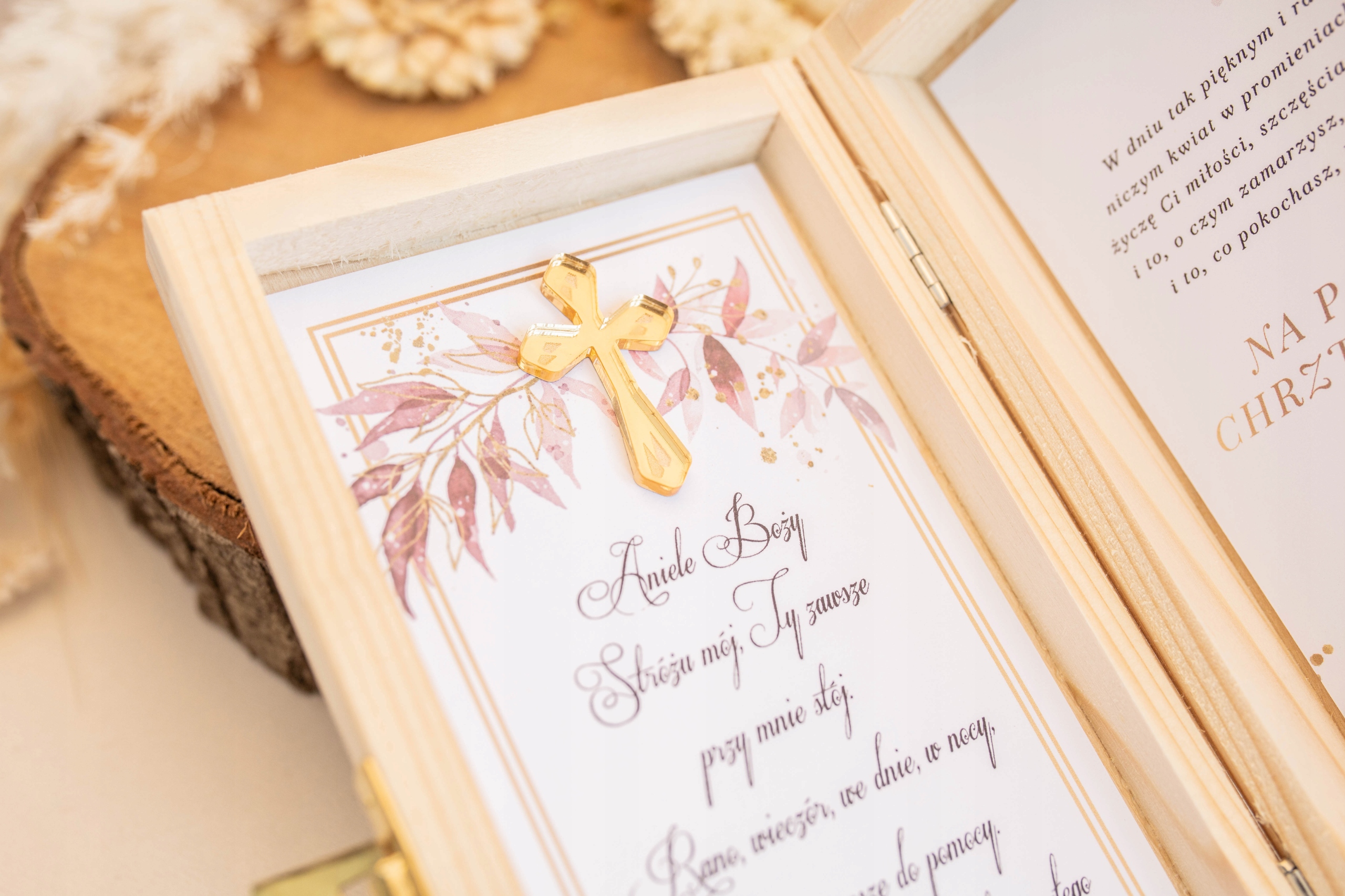 Элегантная денежная коробка по случаю крещения. Это уникальный сувенир, который будет рад эстетике и долговечности. Идеально как подарок от крестных родителей, бабушек и дедушек или близкой семьи.