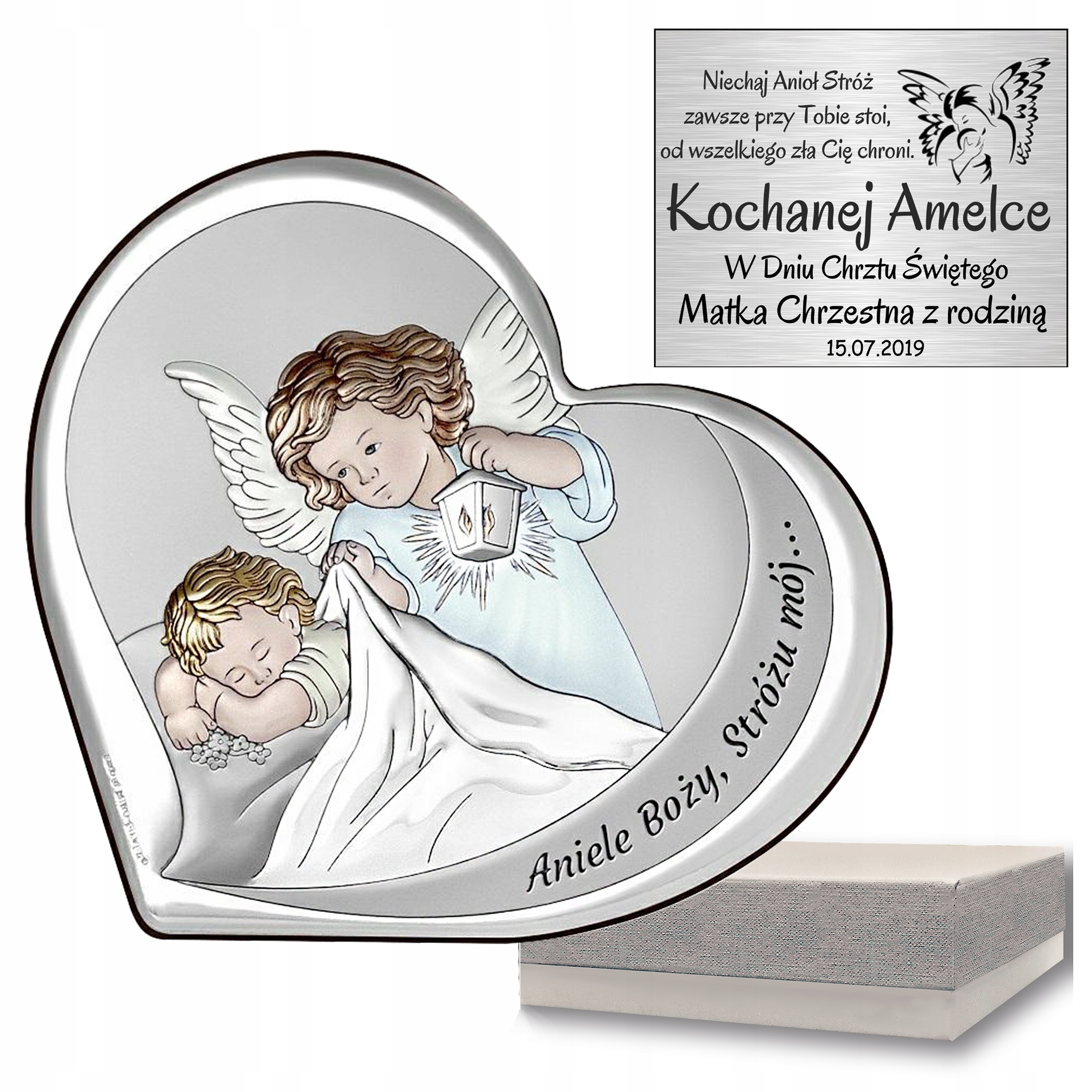 Священные картины являются важным элементом нашего предложения, поэтому мы рекомендуем вам подробно ознакомиться с предлагаемым ассортиментом, в том числе с серебряными святыми изображениями с посвящениями. Они прекрасно символизируют семейные ценности, которые чрезвычайно важны для каждого из нас. Представляем незабываемый подарок на крестины. Изысканная картина с изображением Ангела-Хранителя с личным посвящением запечатлит то, что мимолетно: радость этого особенного дня для всей семьи - Святого Крещения. Картина с изображением Ангела-Хранителя.Прекрасный подарок ко Святому Крещению! Безусловно незаменимыйКрещенский сувенир, подарок на Святое Крещение, символизирующий волшебную заботуАнгела-Хранителя.