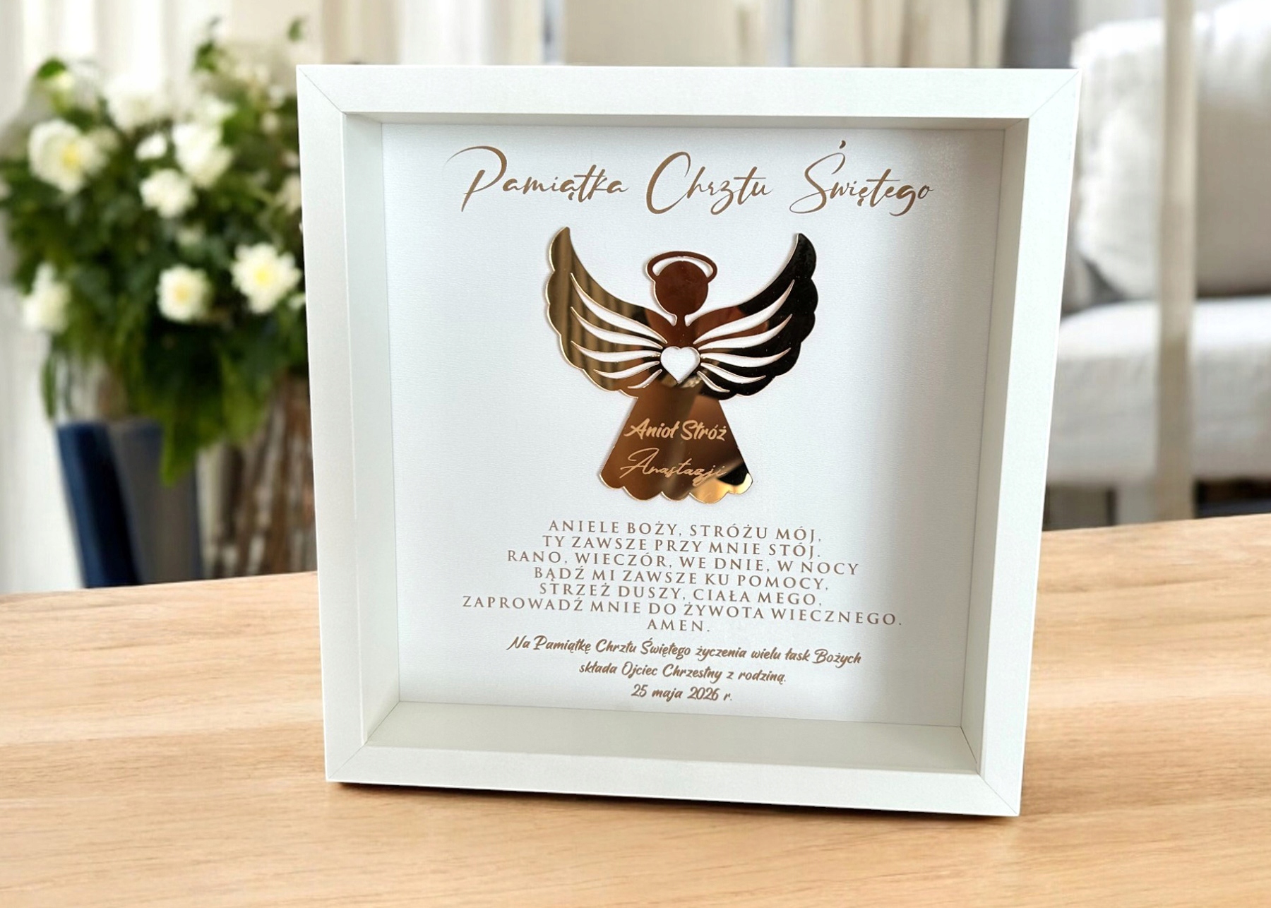 Именованный Сувенир на Крещение с Ангелом-Хранителем - Золотое акриловое зеркало + Молитва