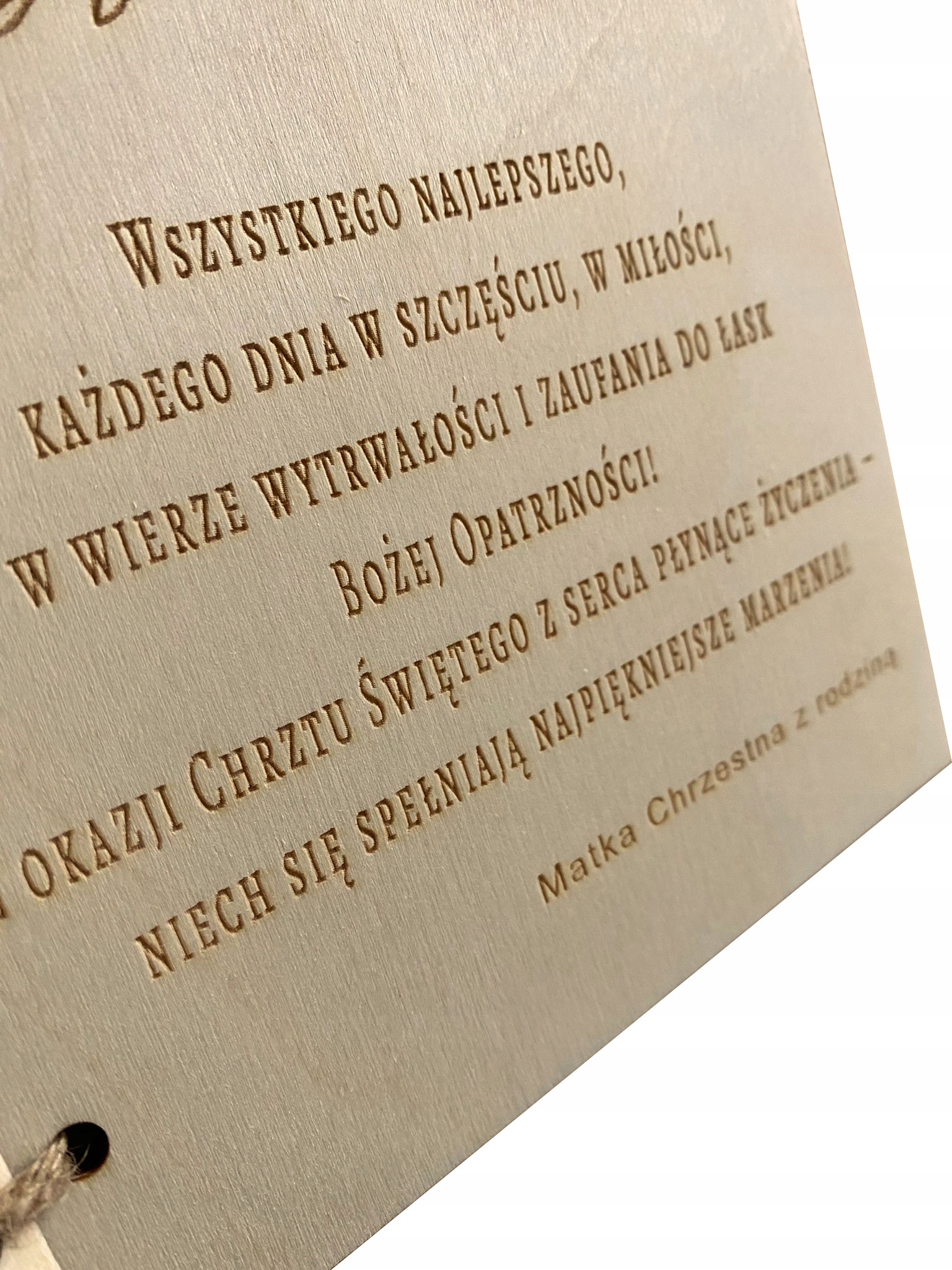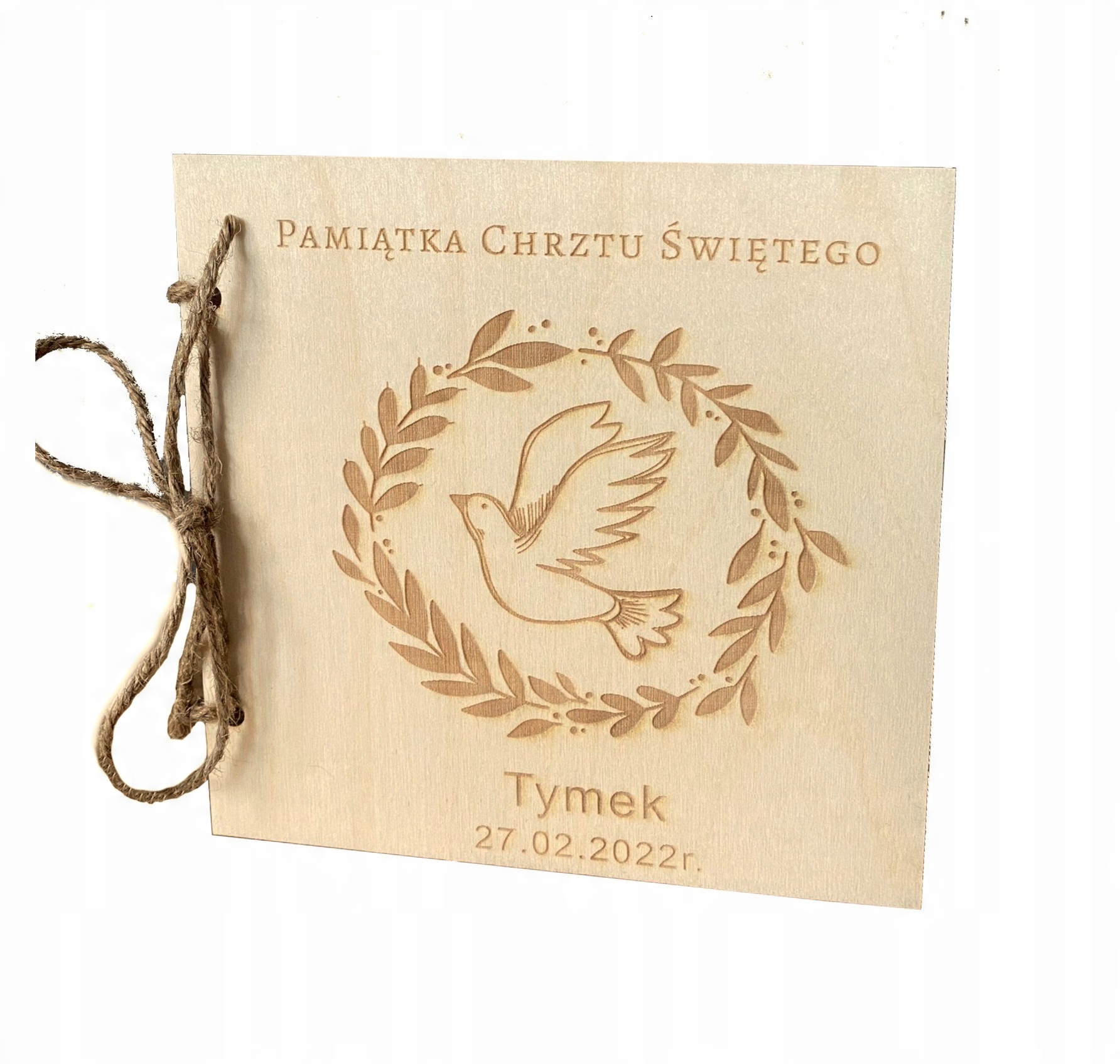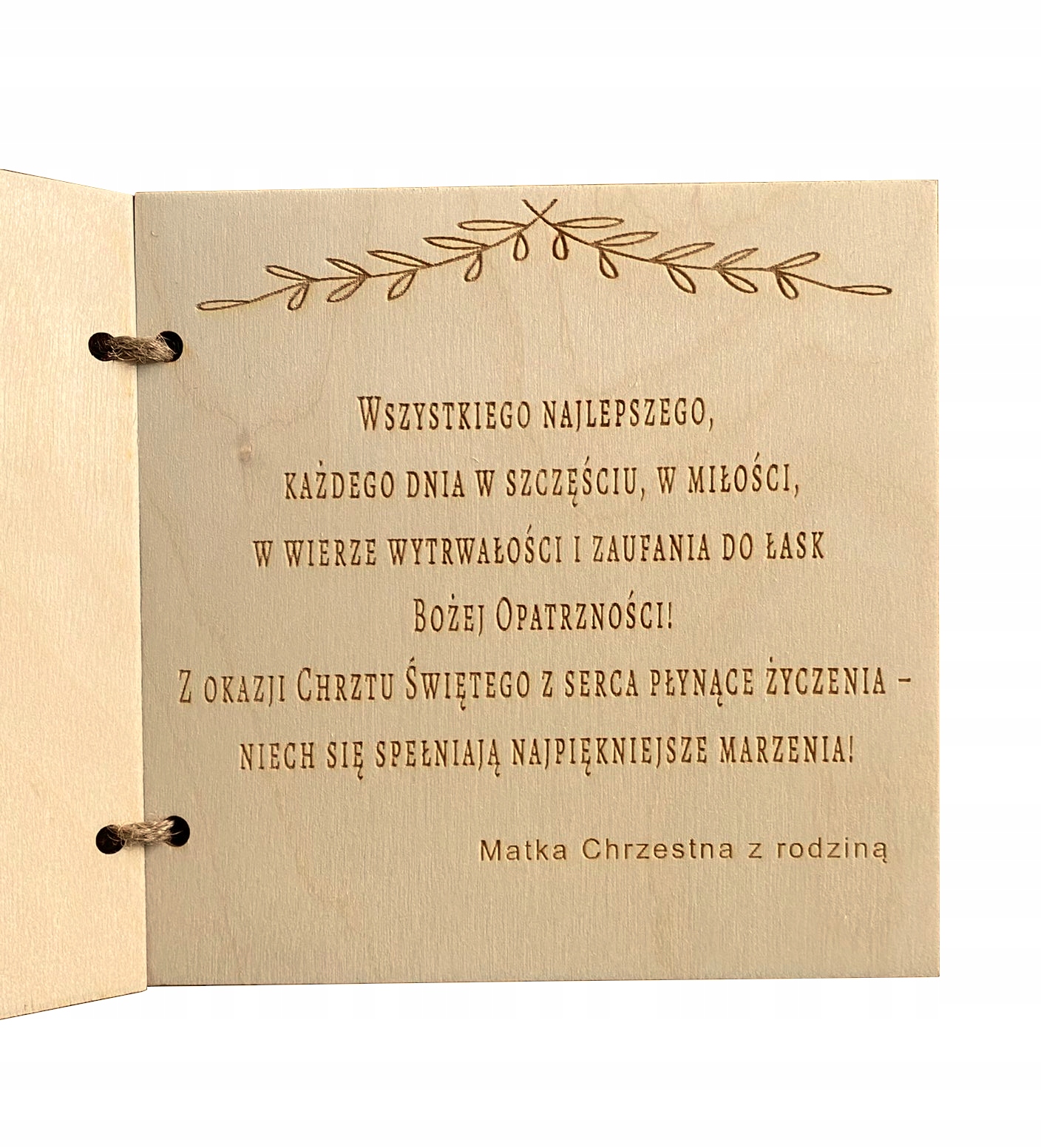 Открытка украшена глубокой лазерной гравировкой в виде ГРАФИКИ, текста «Сувенир Святого Крещения» (ШАБЛОН УКАЗАН по фото слева), и подпись «Имя ребенка + дата Святого Крещения»), выполненная с заботой и вниманием к каждой детали. Внутри находится открытка с лазерной гравировкой с персонализированной вами графикой и пожеланиями или по готовому дизайну.