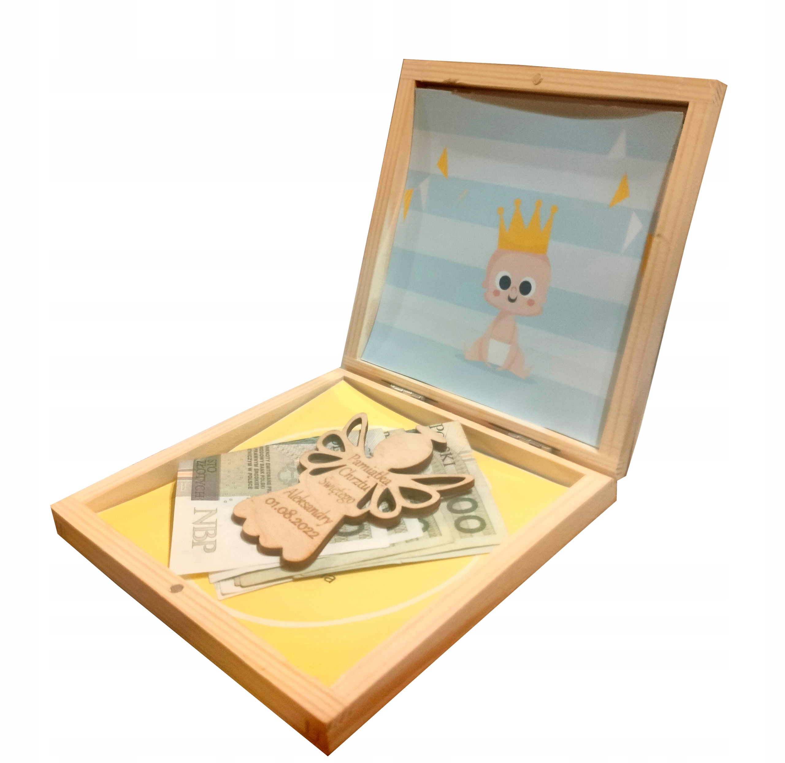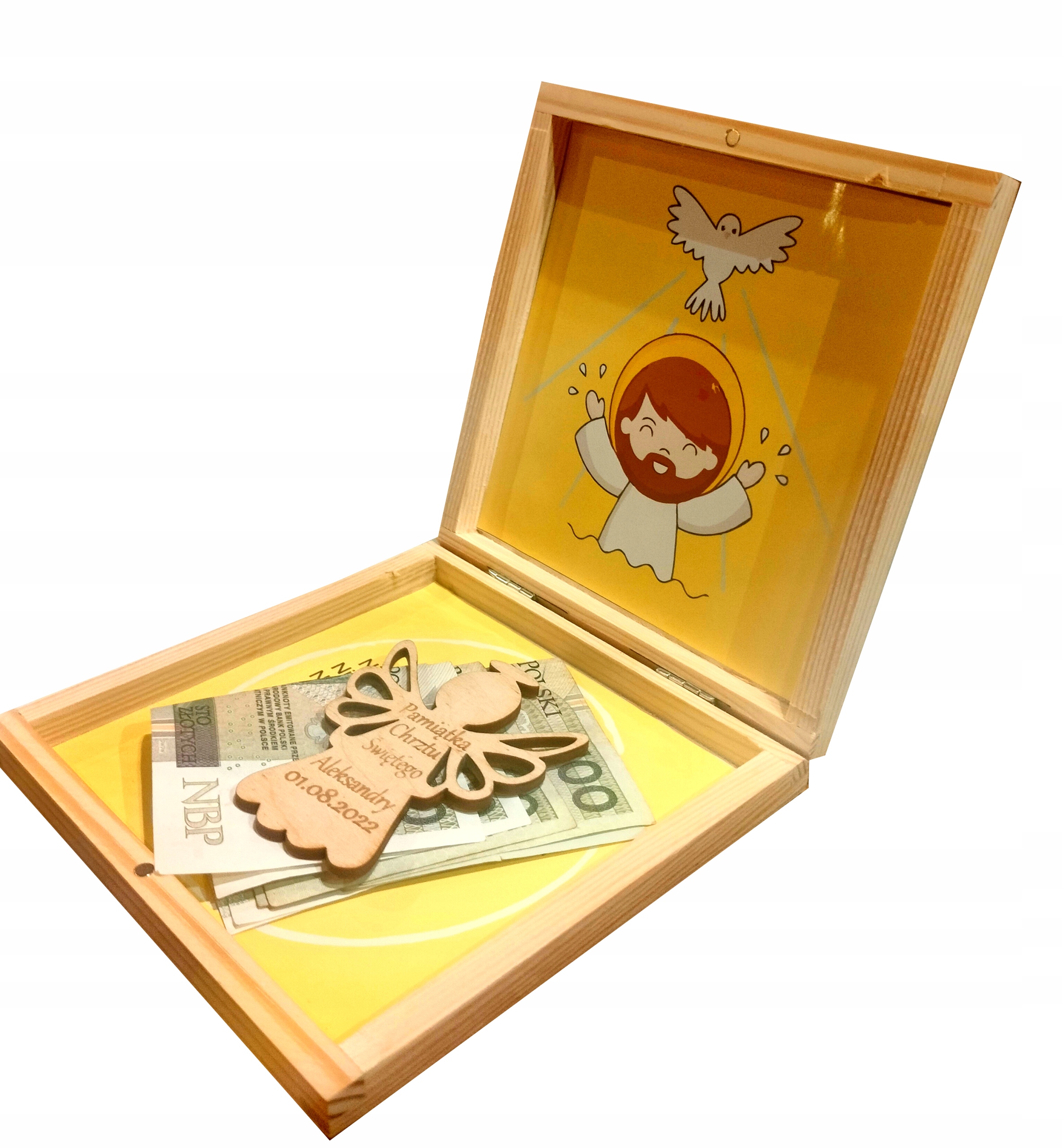 Коробка для конверта на Святое Крещение с ангелом и магнитом