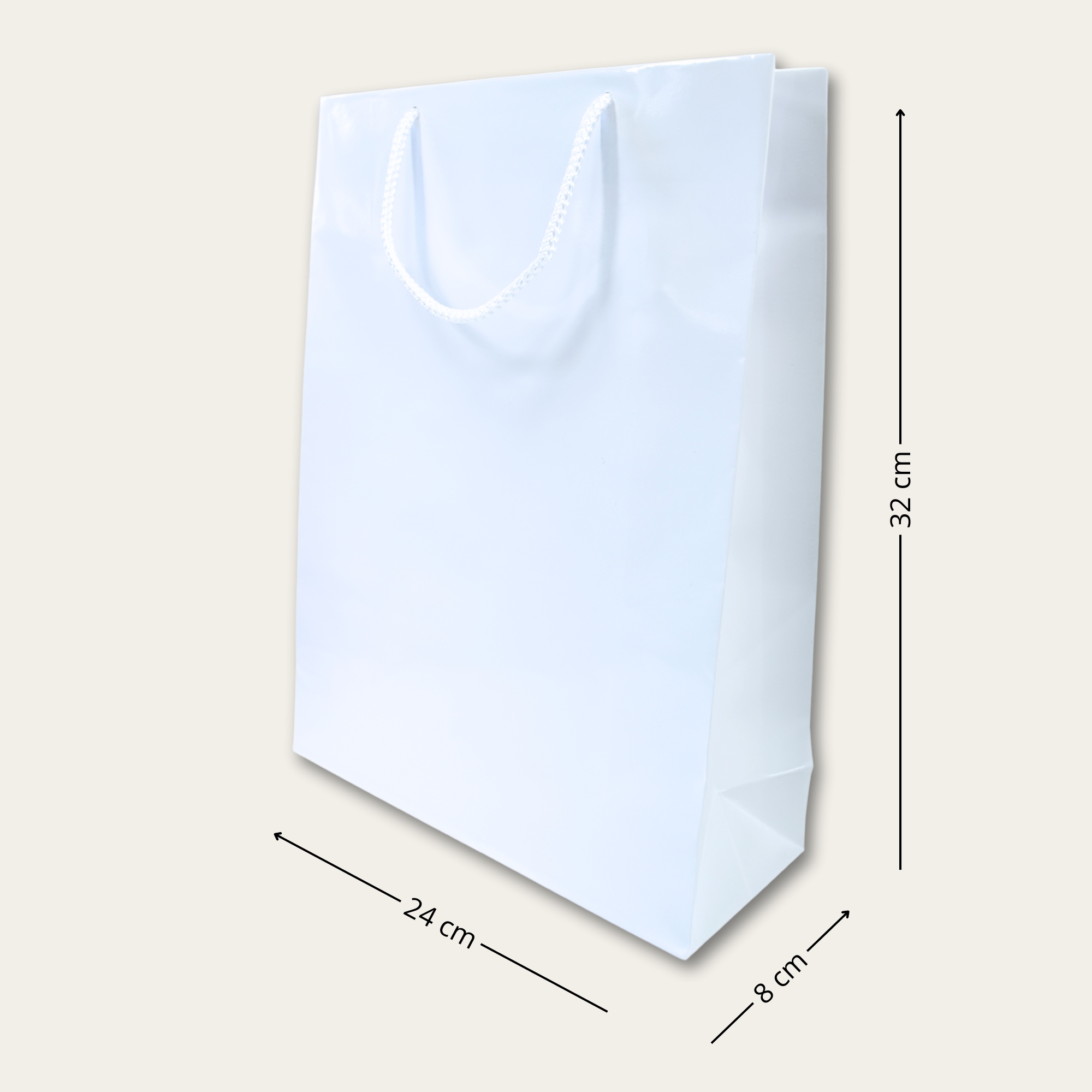 - Белый подарочный пакет размером 32 см х 24 см х 8 см. с подвеской под пивной коврик