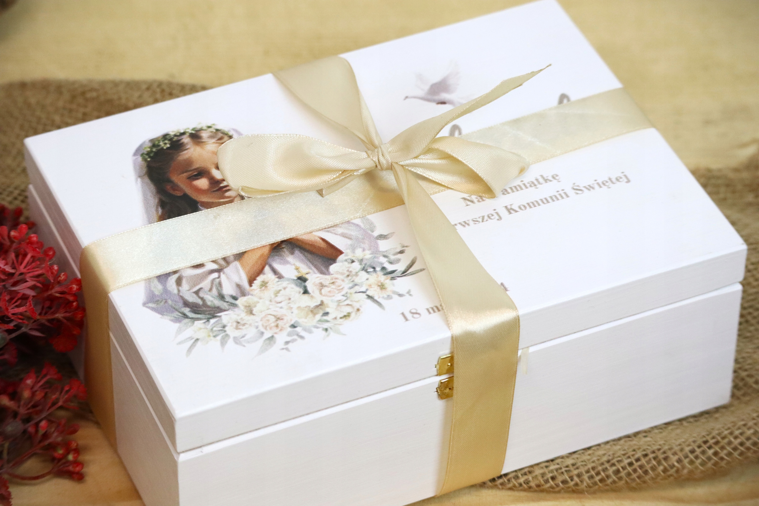 Сувенир первого подарка причастия для причастия, белая ящик для печати!