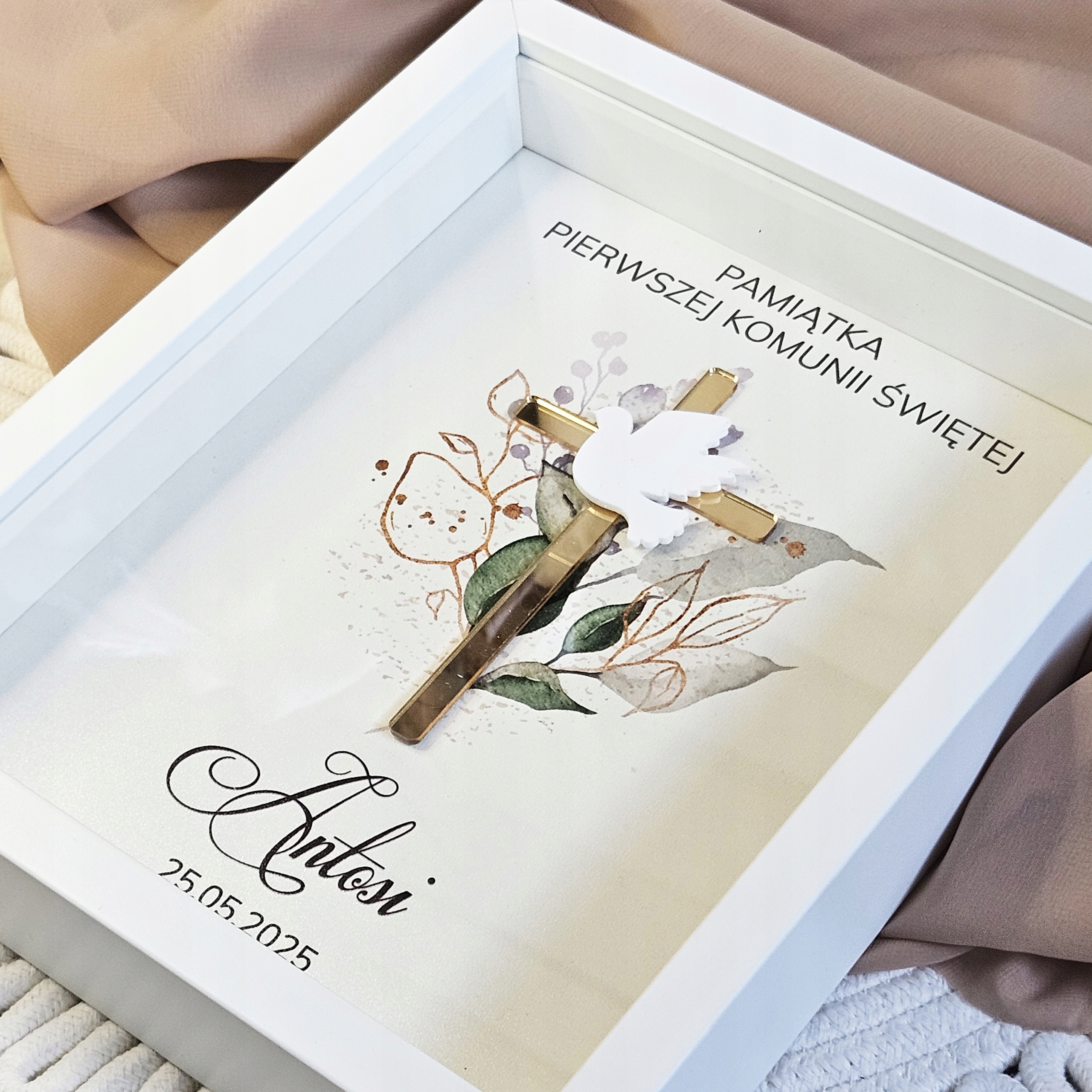 Подарок для святого причастия - персонализированный 3D -кадр с крестом и голубя h2>