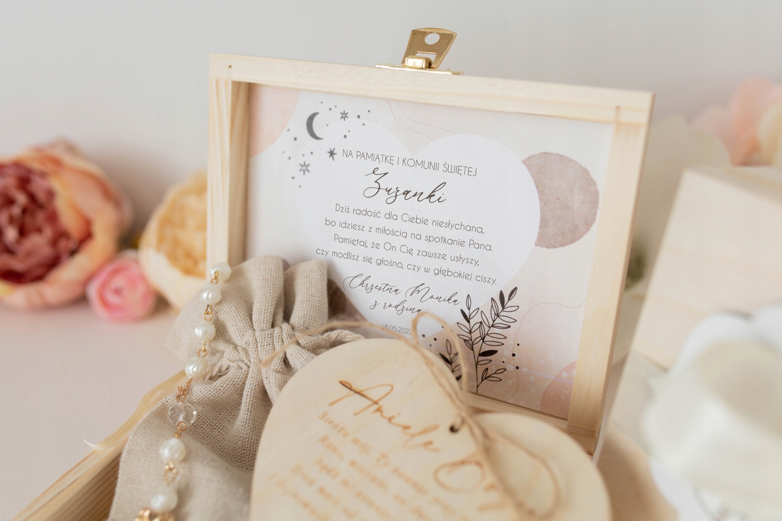 дайте любимому человеку символ веры и любви - деревянная коробка с гравированной молитвой - это красивый и вневременный сувенир первого святого причастия.