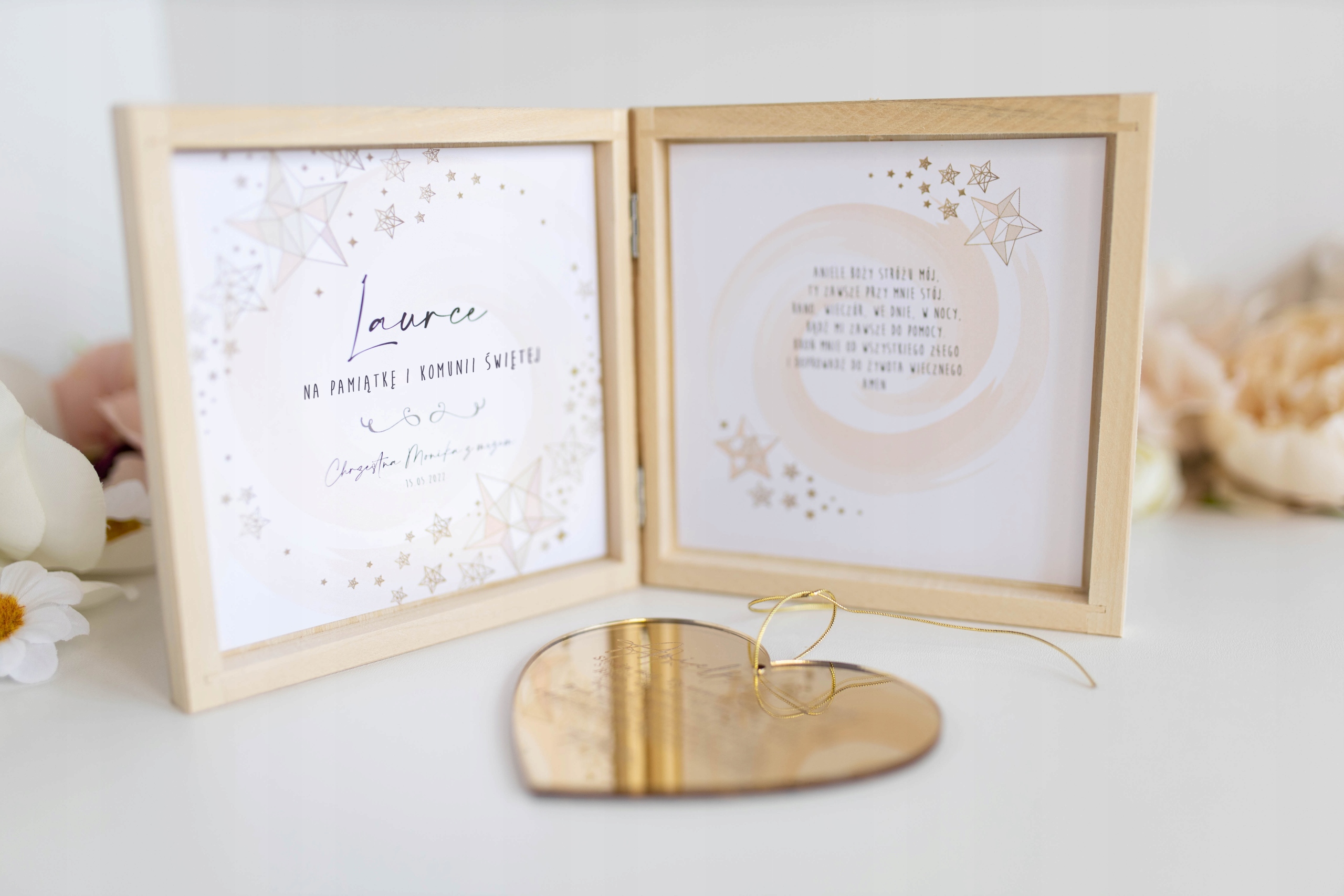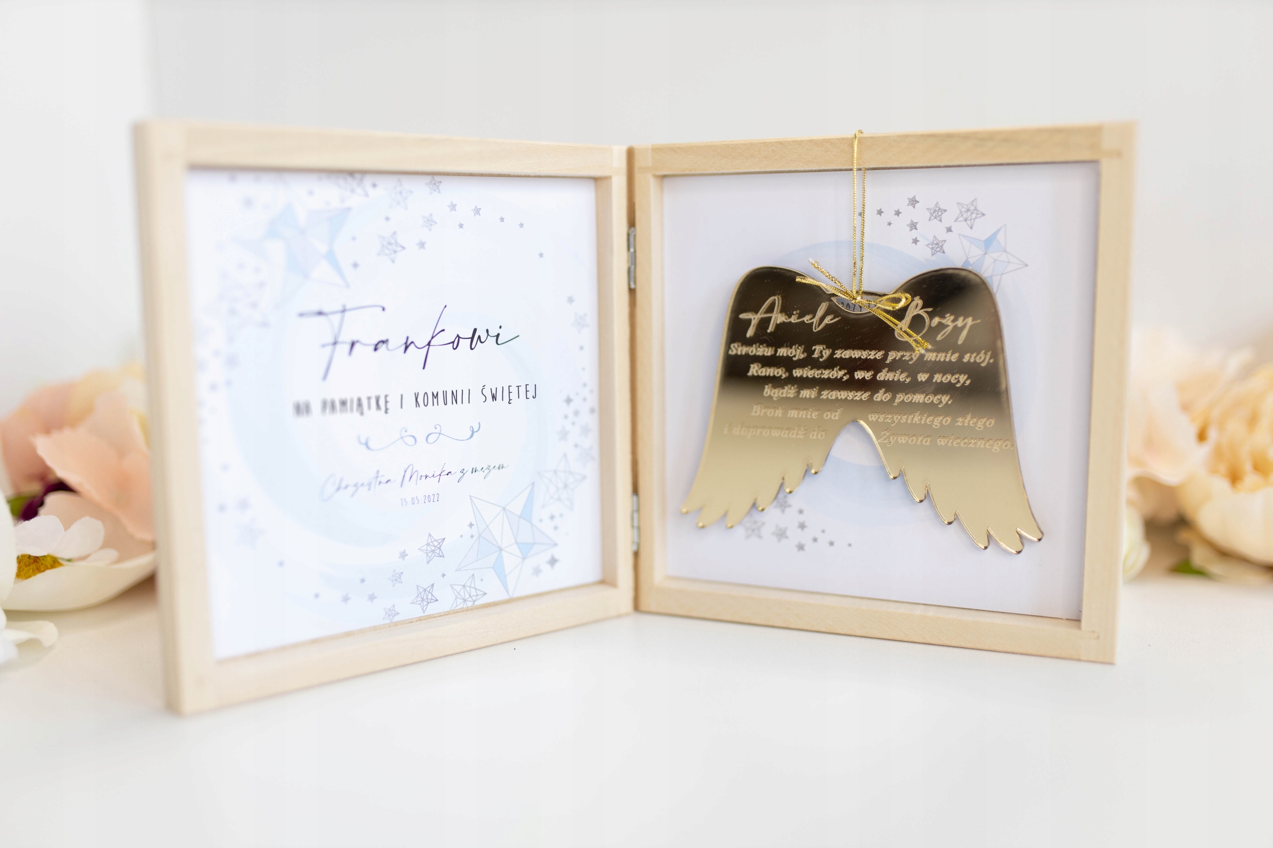 дайте любимому человеку символ веры и любви - деревянная рамка с гравированной молитвой - это красивый и вневременный сувенир первого святого причастия