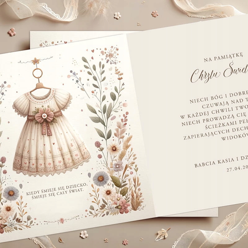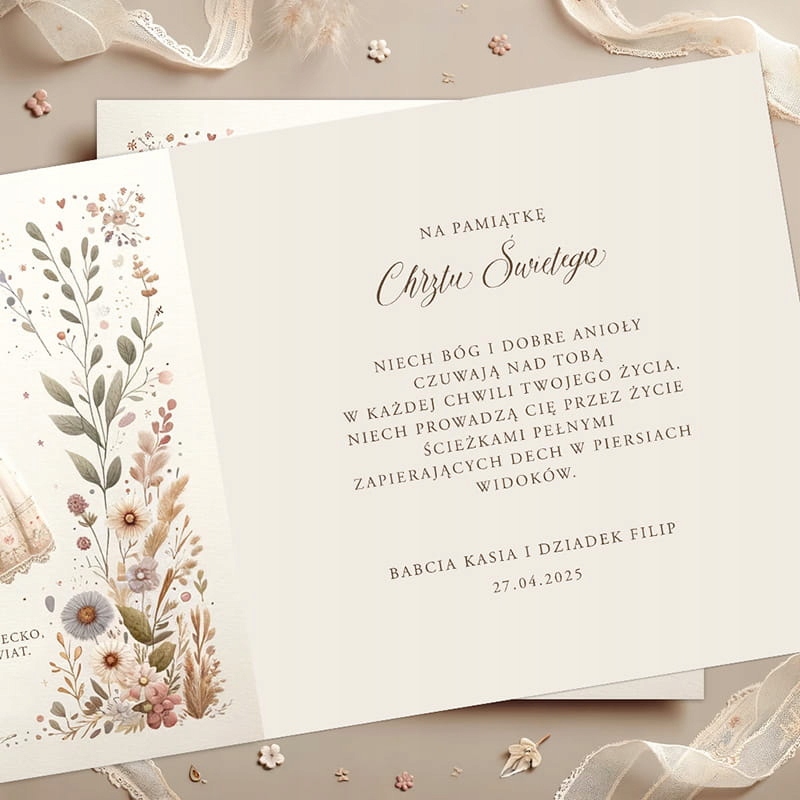 Памятная открытка по случаю Святого Крещения сочетает в себе простоту формы с богатством деталей.
