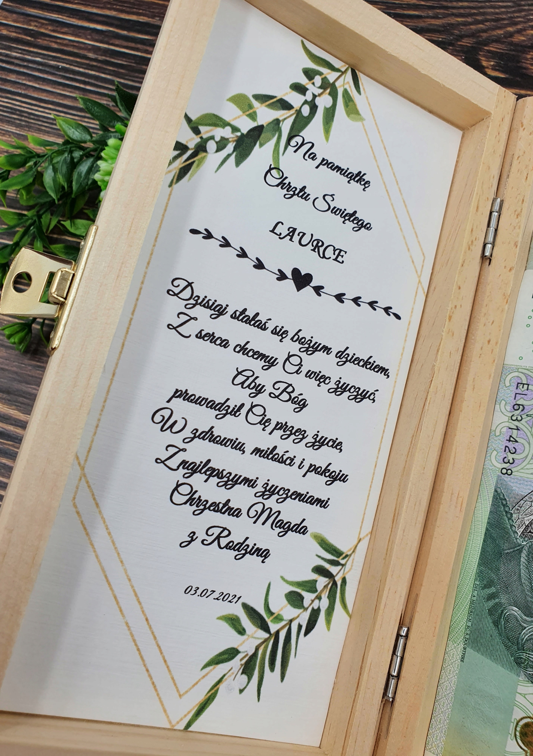 На других аукционах вы найдете шкатулки для других случаев: Первое причастие, Свадьба, День рождения, Рождение и т.д.
