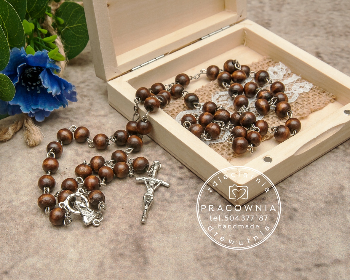 Белая деревянная шкатулка с деревянными четками на память о Святом Причастии для ребенка или благодарность крестным, бабушкам и дедушкам.