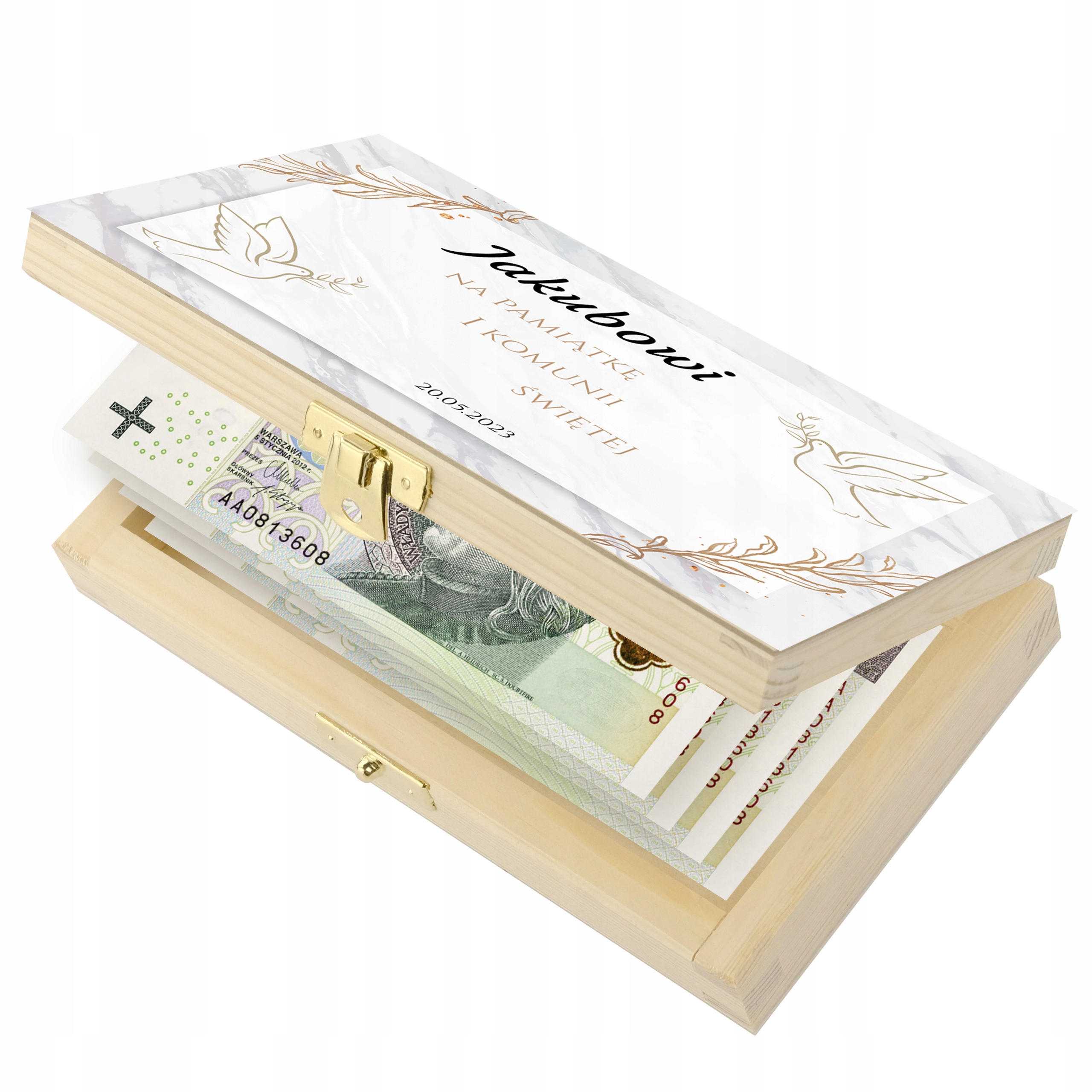 Размер коробки идеально соответствует размеру банкнот. Высота 3,5 см позволит разместить большую сумму наличных, а в длину и ширину легко поместится купюра номиналом 500 злотых.