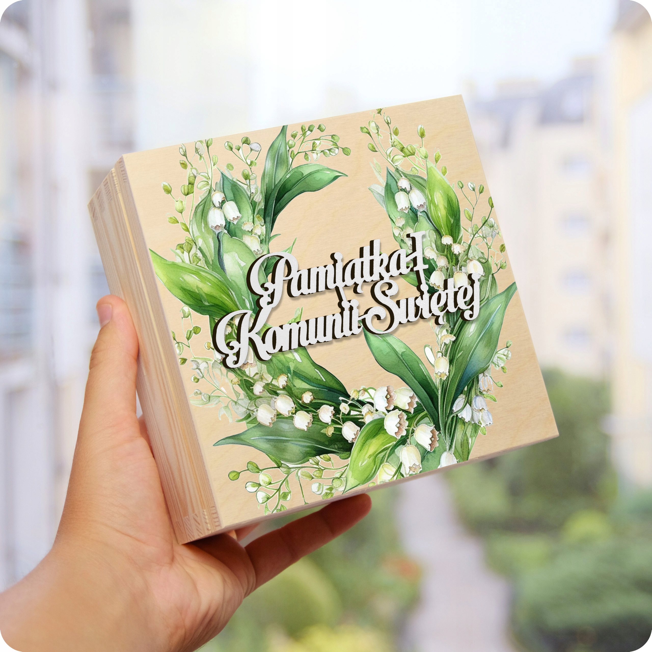 ⭐Оригинальный подарок к Первому Причастию - Деревянная шкатулка с отделениями и наклейкой