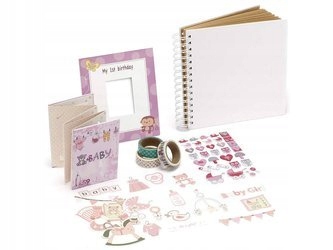 Уникальный подарочный набор, который запечатлит первый год жизни вашего малыша! Содержит альбом 20х20см (40 страниц), рамку для картриджей Instax mini, 3 цветные ленты для наклеивания фотографий, рамку для 10 фотографий Instax mini и набор наклеек.