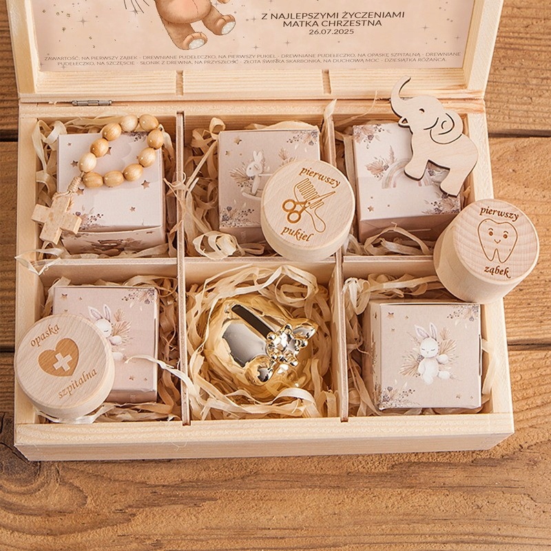 СУВЕНИРЫ НА КРЕЩЕНИЕ ПОДАРОК НА КРЕЩЕНИЕ ДЕРЕВЯННАЯ КОРОБКА ESSENTIAL + ИМЯ ТЕДДИ