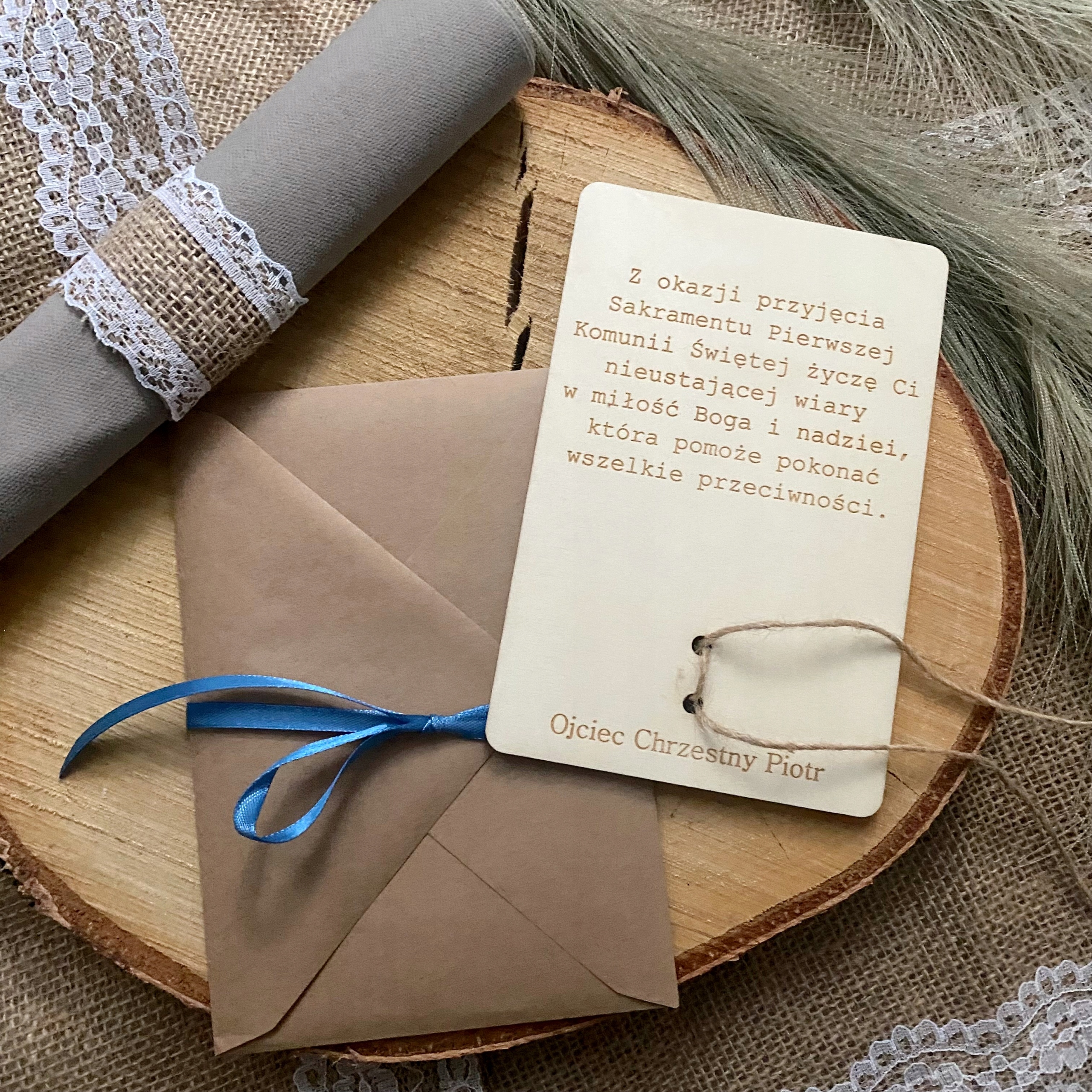 ДЕРЕВЯННАЯ КАРТОЧКА-СУВЕНИРЫ ПЕРВОГО СВЯТОГО ПРИЧАСТИЯ, ПОДАРОК С МЕСТОМ ДЛЯ БАНКНОТЫ (+ПЕРСОНАЛИЗАЦИЯ)