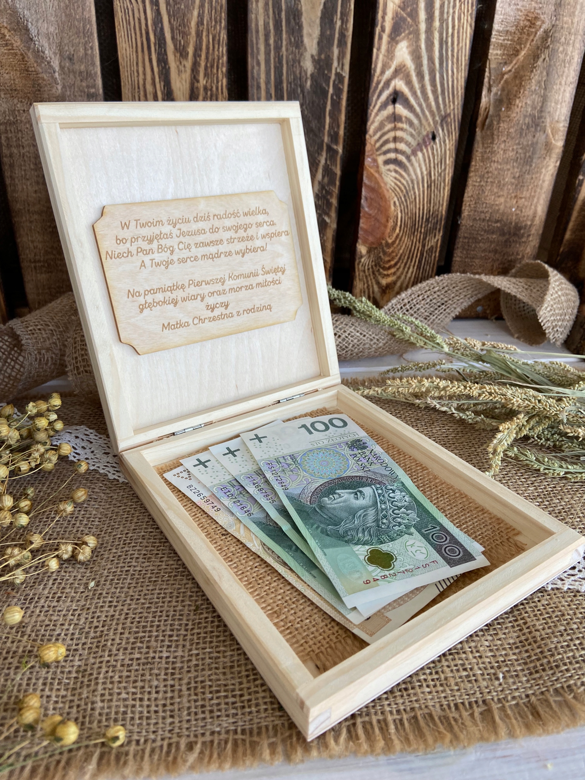 Размеры коробки идеальны для того, чтобы положить внутрь деньги. Вы также можете положить открытку в коробку, доступную в нашем предложении.