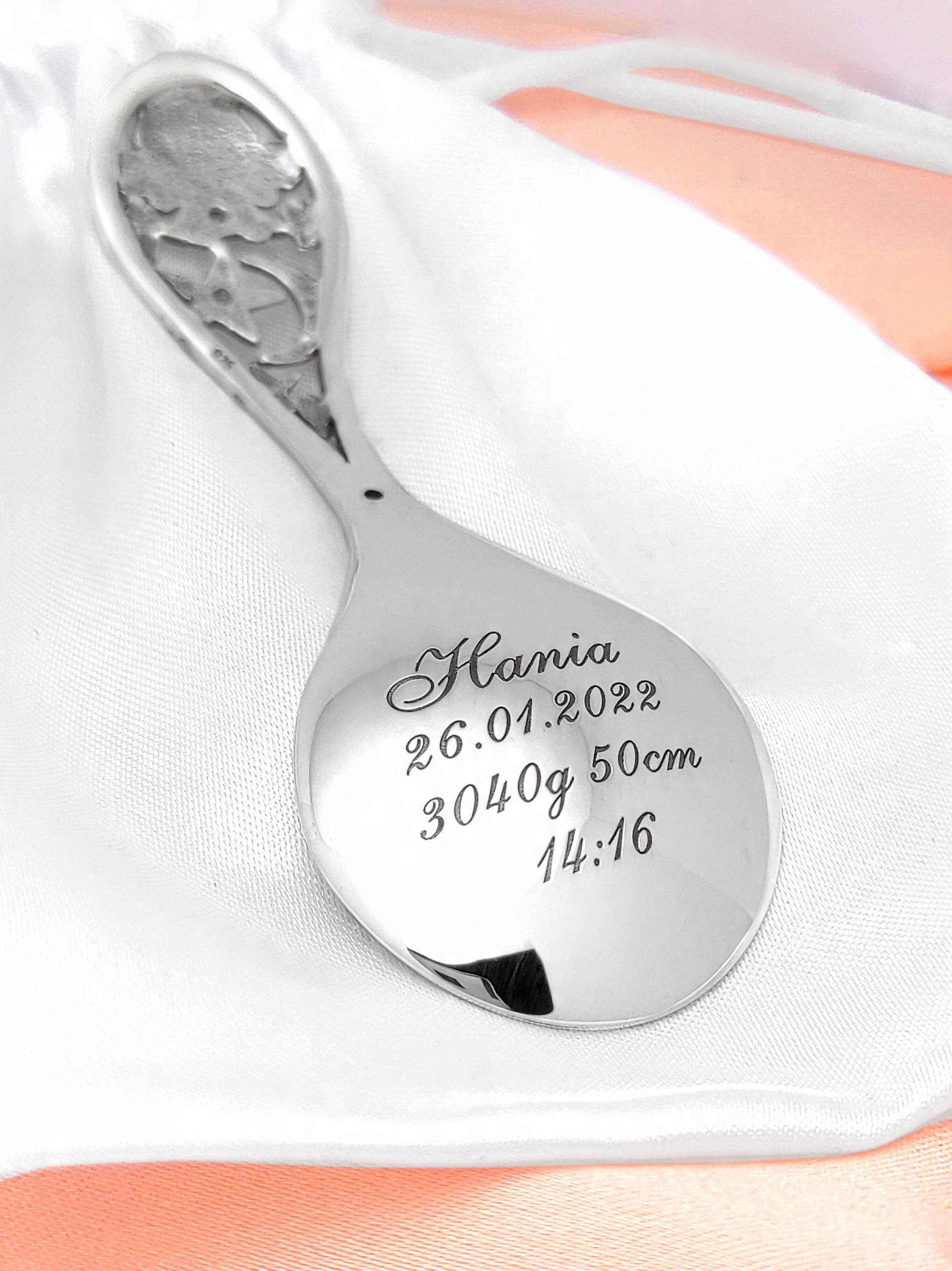 Мы можем выгравировать на чаше ложки следующие данные ребенка: