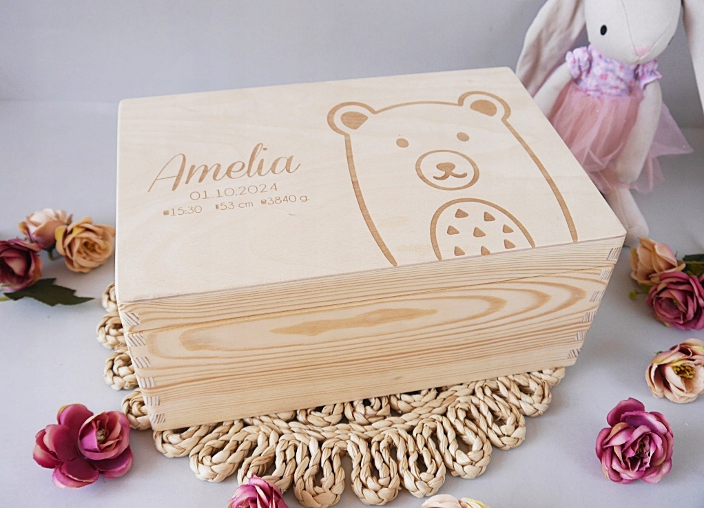 Сувенірна коробка на хрещення, гравірування річної давності, свідоцтво про народження