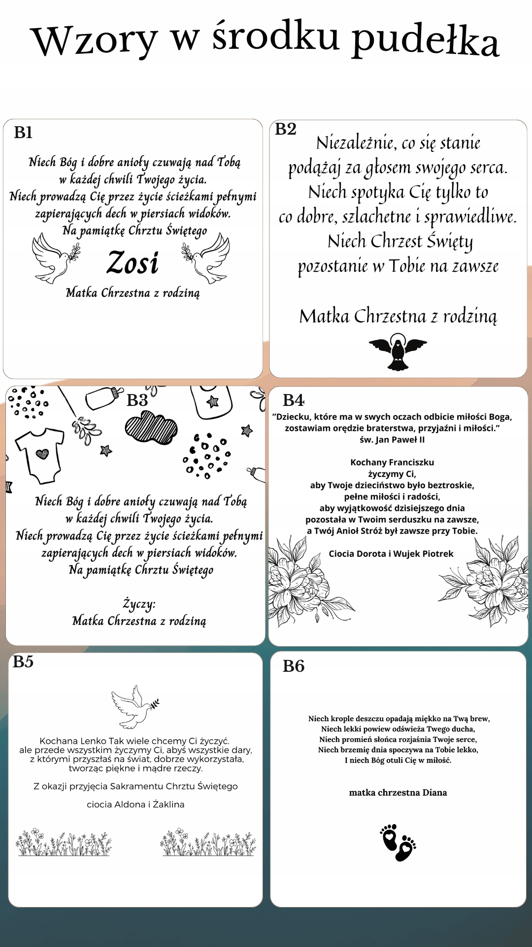 Просматривая «СУВЕНІРНА КОРОБКА НА ХРЕЩЕННЯ ГОТОВА ПОДАРУНОК НА ХРЕЩЕННЯ З ГРАВІЮВАННЯМ», вы можете быть уверены, что данный товар из каталога «Коробки» будет доставлен из Польши и проверен на целостность. В цене товара, указанной на сайте, учтена доставка из Польши. Внимание!!! Товары для Евросоюза, согласно законодательству стран Евросоюза, могут отличаться упаковкой или наполнением.