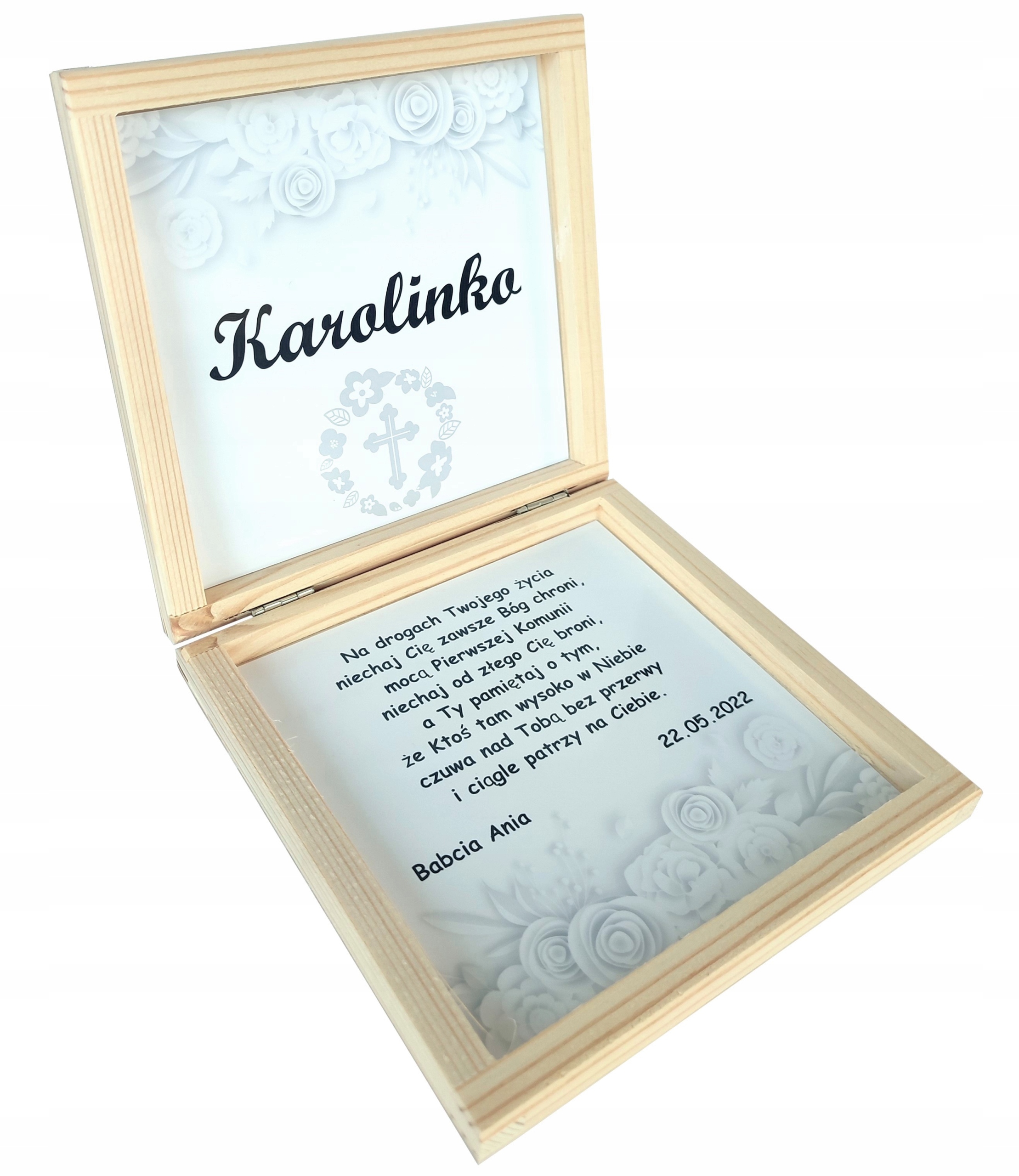 Закрытая, сосновая шкатулка с пожеланиями и персонализацией.