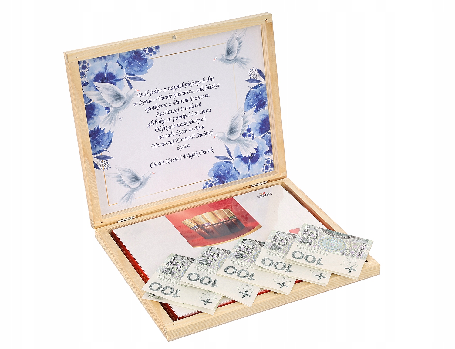 Деревянная шкатулка для мерси и денег – подарок причастию.