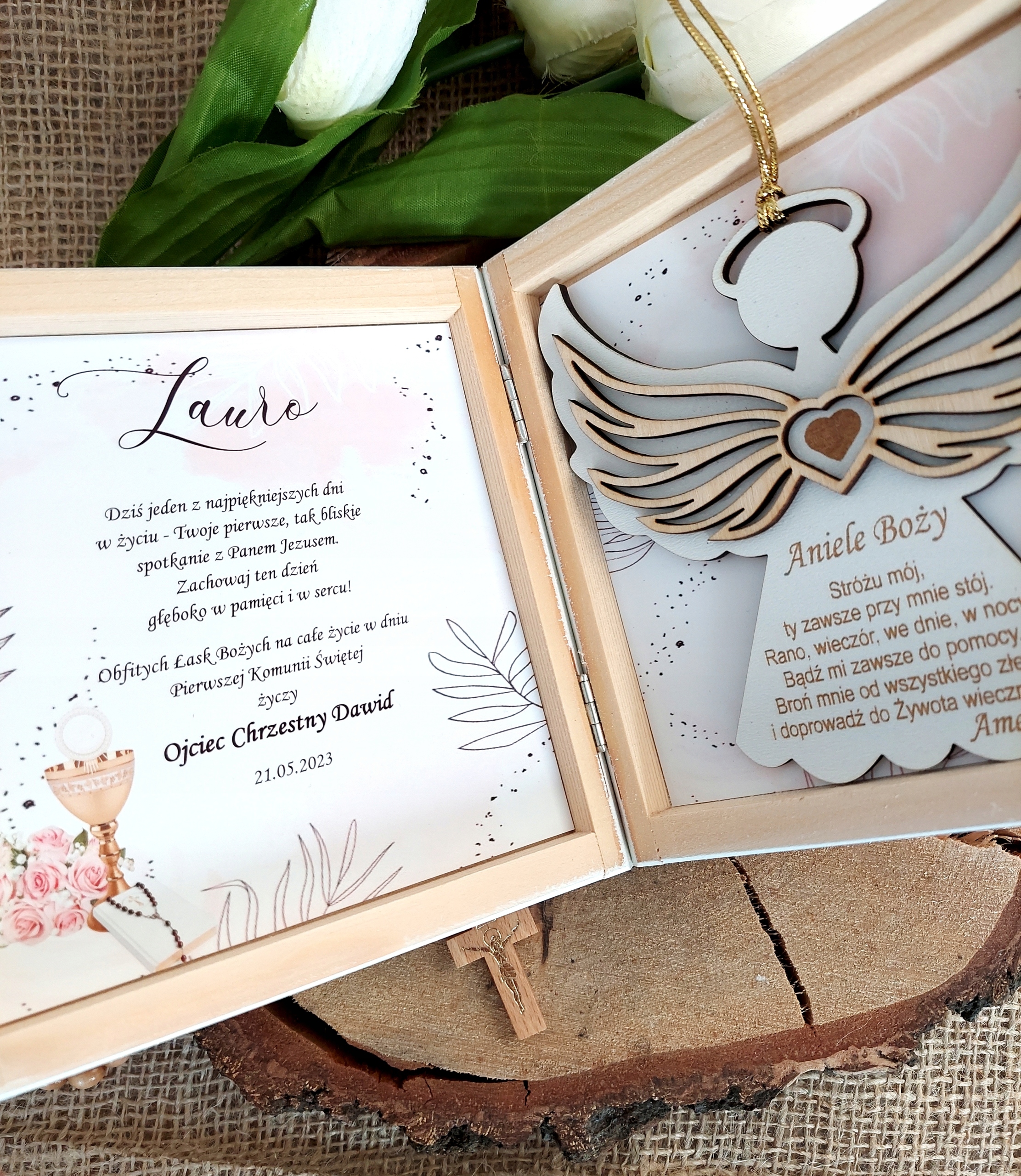 Сувенірна скринька Святого Причастя з молитвою АНГЕЛ