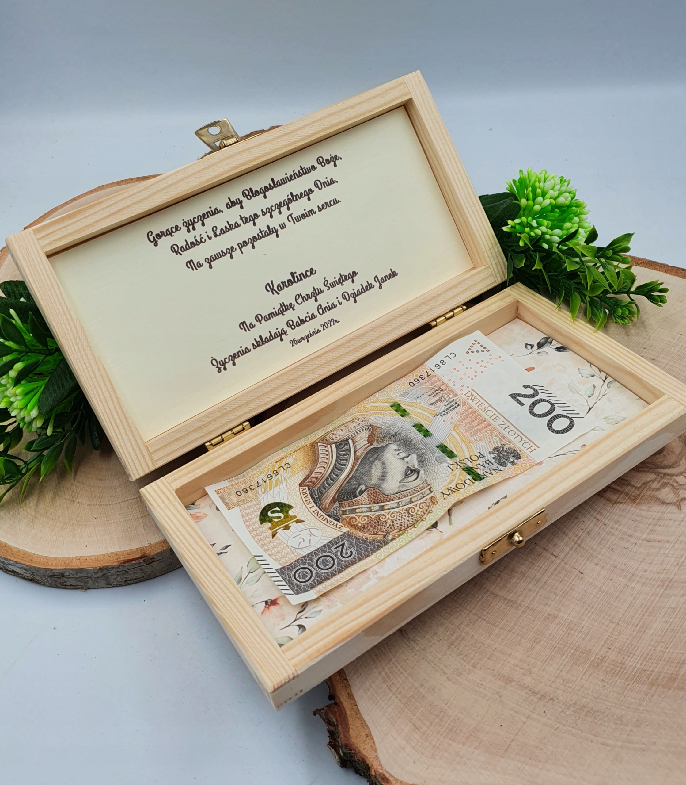 На других аукционах вы найдете шкатулки для других случаев: Первое причастие, Свадьба, День рождения, Рождение и т.д.