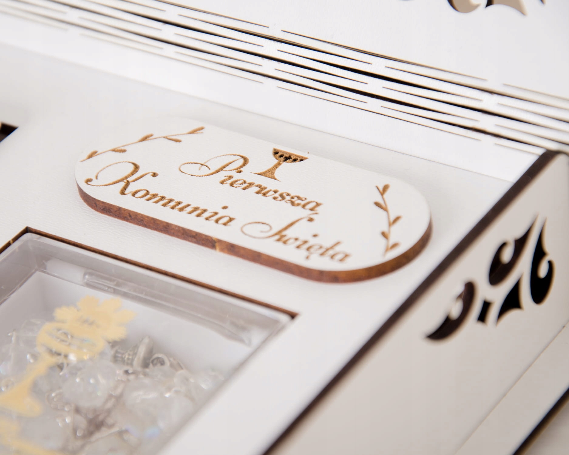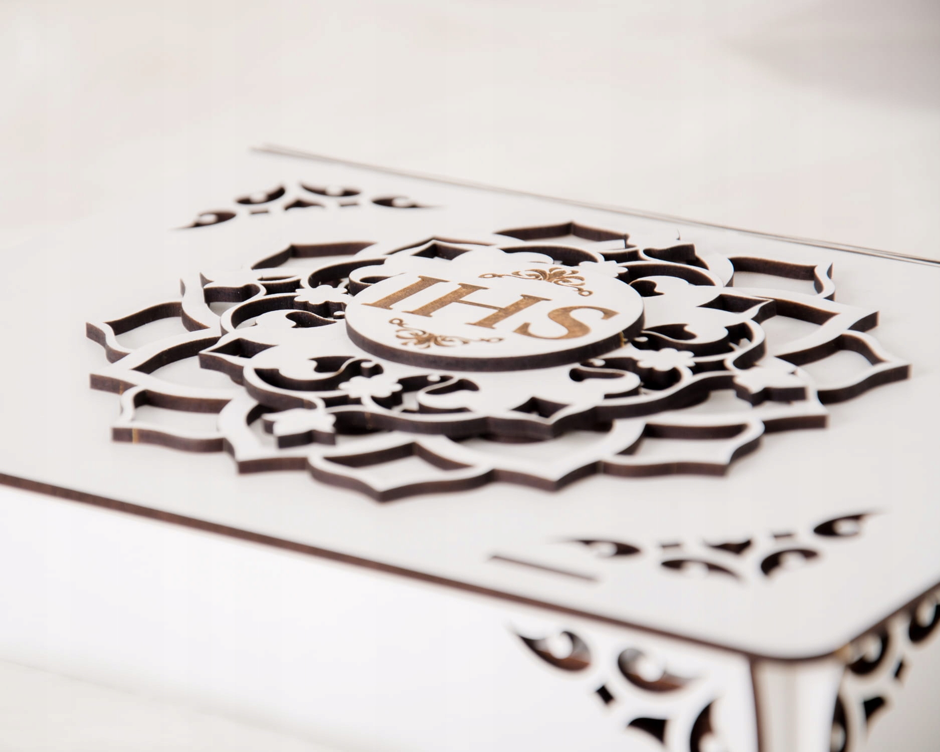 Эстетическое качество изготовления делает шкатулку красивой в качестве декоративной шкатулки для безделушек или других сувениров из таинства Святого Причастия.