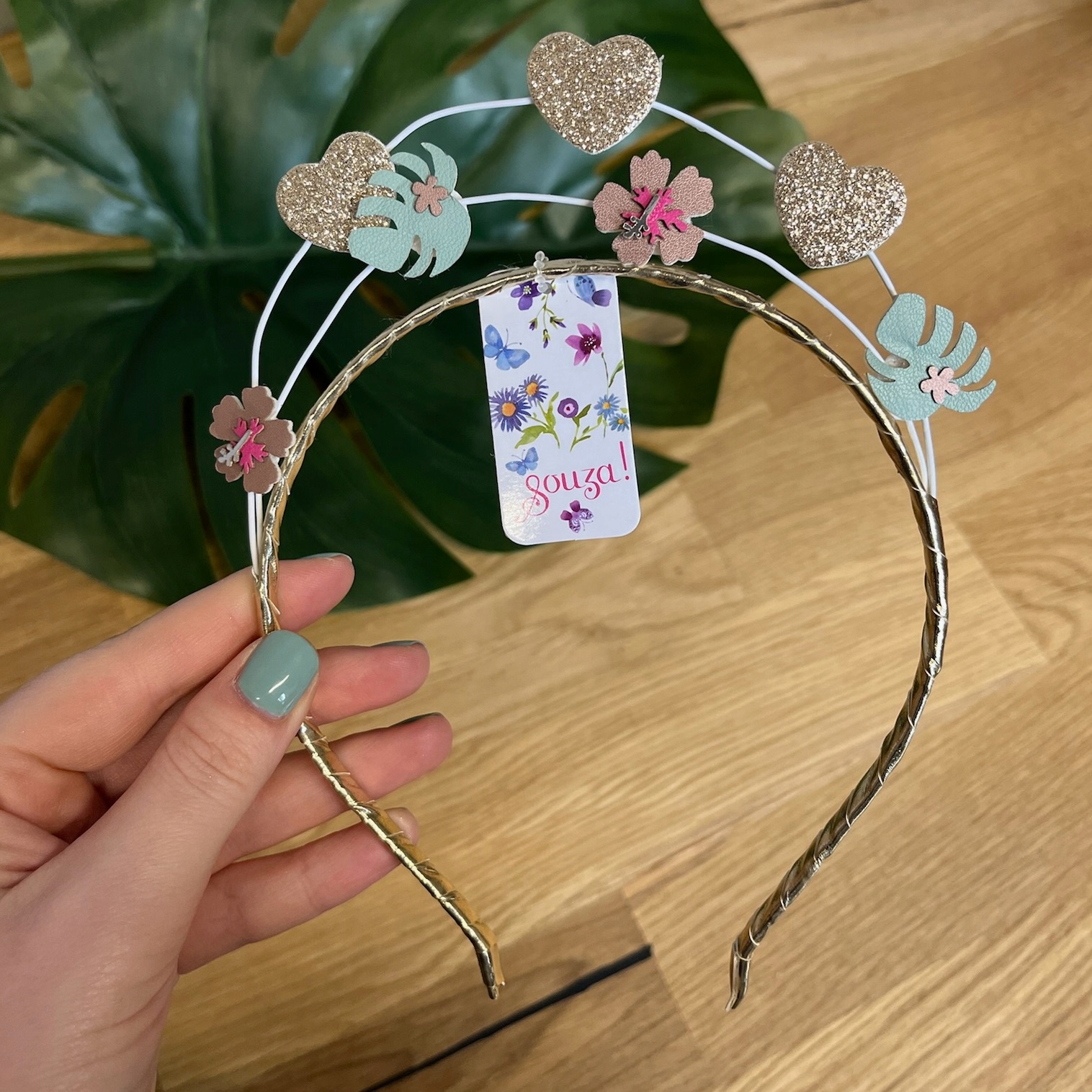 Souza Meline Hair Band! Летняя тиара с цветами и сердечными деталями в пастельных тонах и парчонных цветах, будет идеально подходит для каждой принцессы и фей!
