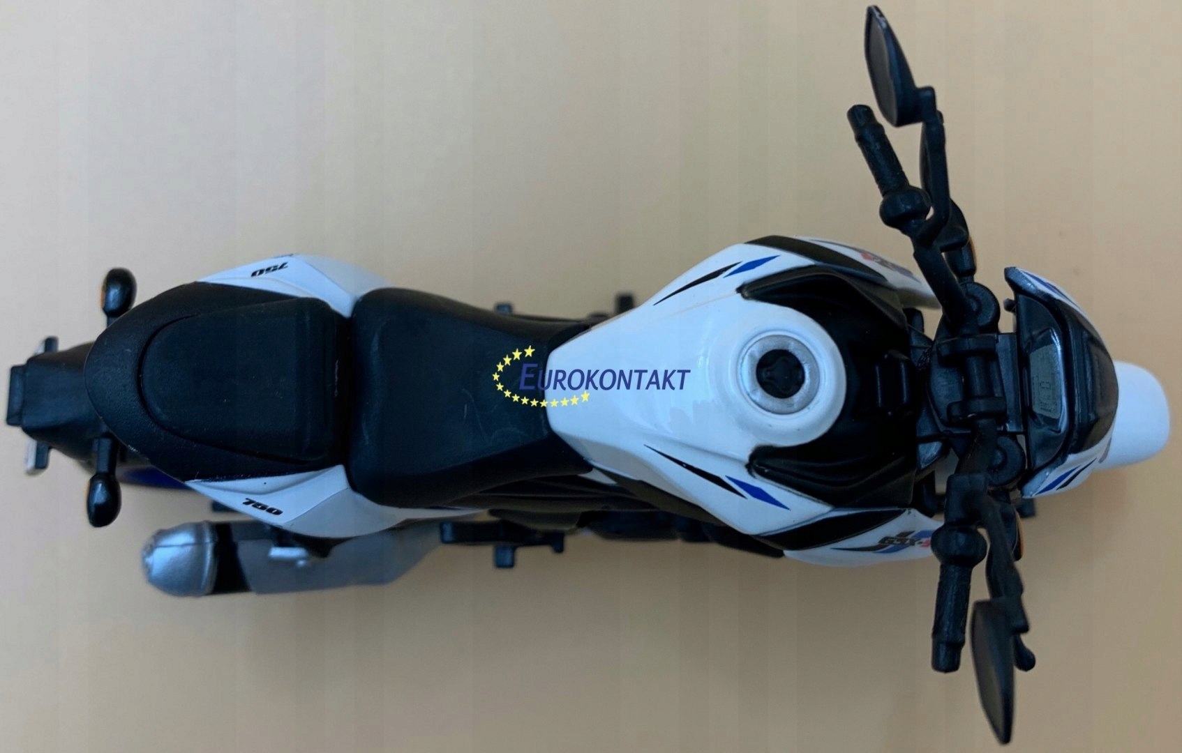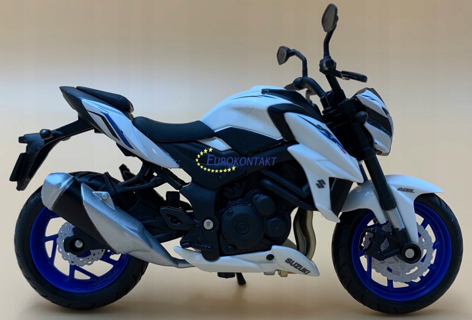 Модель мотоцикла Suzuki отличается вниманием к деталям. Имеет подвижные элементы: колеса, руль, задний поворотный рычаг.