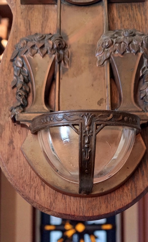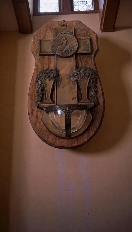 На нем изображен образ Святого. Тереза Младенца Иисуса, известная как Маленькая Тереза Лизье, и сосуд для святой воды, расположенный внизу. Очень привлекательное украшение интерьера или отличный подарок на случай.