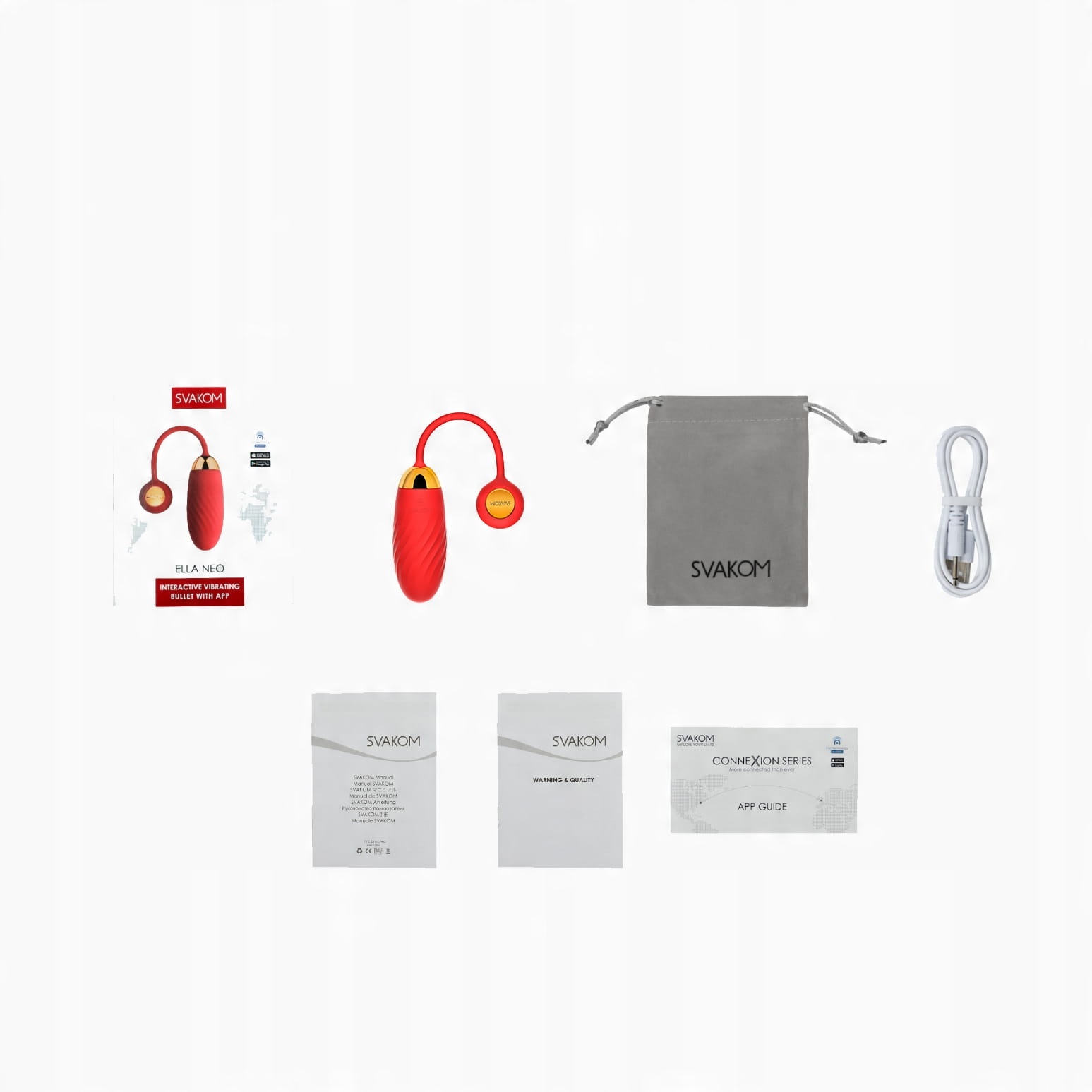 Элегантный виброшарик Сваком Элла Нео – это обогащенная версия самой продаваемой модели. Изготовленный из красного медицинского силикона, Сваком Элла Нео подключается к бесплатному приложению, обеспечивающему управление на любом расстоянии и позволяющему связаться с партнером посредством видеочата. Секс-игрушка также подключается к интерактивным 2D-фильмам. Помимо приложения, вибрирующий шарик также работает посредством ручного управления.