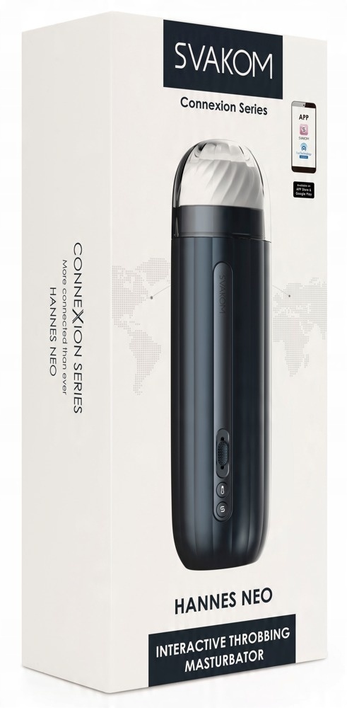 Полностью автоматический пульсирующий мастурбатор Hannes Neo от Svakom с съемный рукав со стимулирующей структурой для интенсивного массажа полового члена. С функцией глубоких пульсирующих толчков с 5 уровнями интенсивности и дополнительной функцией нагрева, которая обеспечивает особенно реалистичное ощущение. Все удобно управляется с помощью кнопки/ползунка (плавная регулировка скорости) непосредственно на игрушке или через приложение FeelConnect 3 на смартфоне с 3 основными функциями: Дистанционное управление (в любое время из любой точки мира), подключение к интерактивным 2D фильмам. и интерактивная веб-камера.