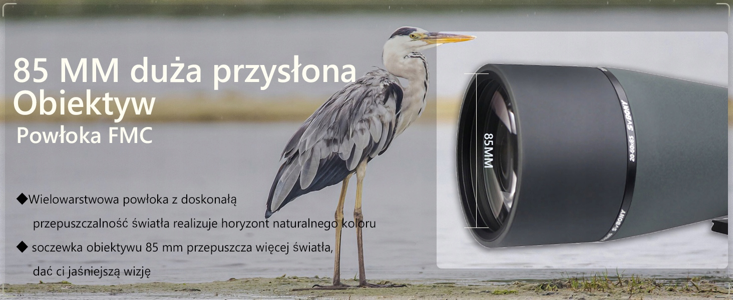Можно использовать увеличение в 20–60 раз; легко увидеть птиц; Дополнительные 85 мм дополнительные элементы FMC для доступа к свету, благодаря которому поле будет освещено и ярче.
