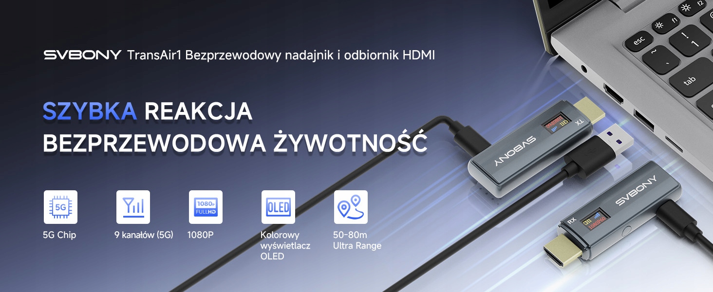 Svbony ST2 HDMI передатчик и приемник, беспроводной удлинитель HDMI HD с цветным OLED-дисплеем, 9 каналов, 2,4G и 5G, без помех, радиус действия 50-80 м на открытом пространстве для камеры, компьютера, телевизора, ноутбука
