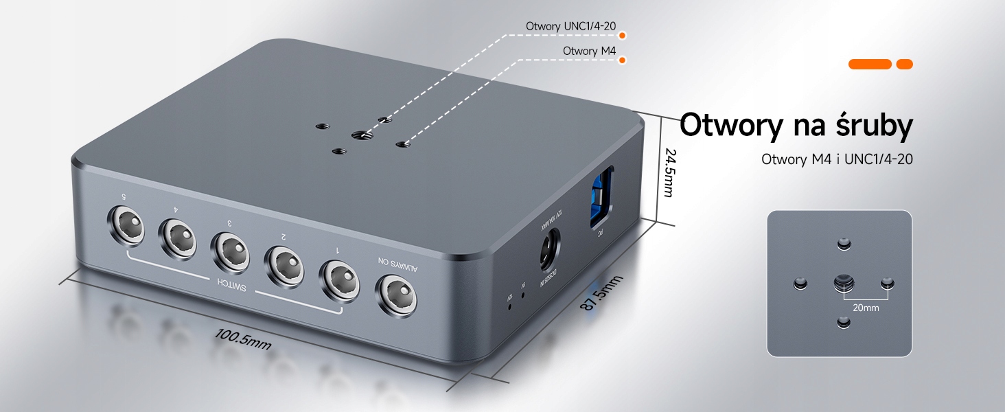 - Винтовые отверстия: отверстия M4 и UNC1/4-20