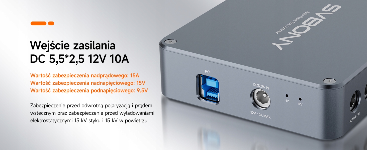 - Выход DC: всегда включен 12 В, макс. 6 A, DC5,5*2.1 Переключатель 1-5: 12 В, макс. A, DC5.5*2.1 - можно включить/выключить; Регулируемый выход 0-15 В с регулировкой; Вы можете включить/выключить, макс. 3 A