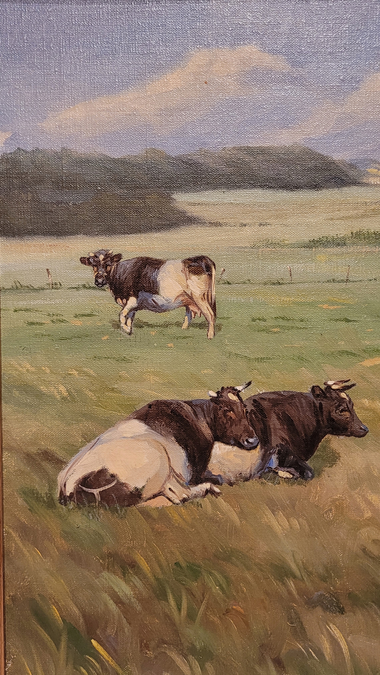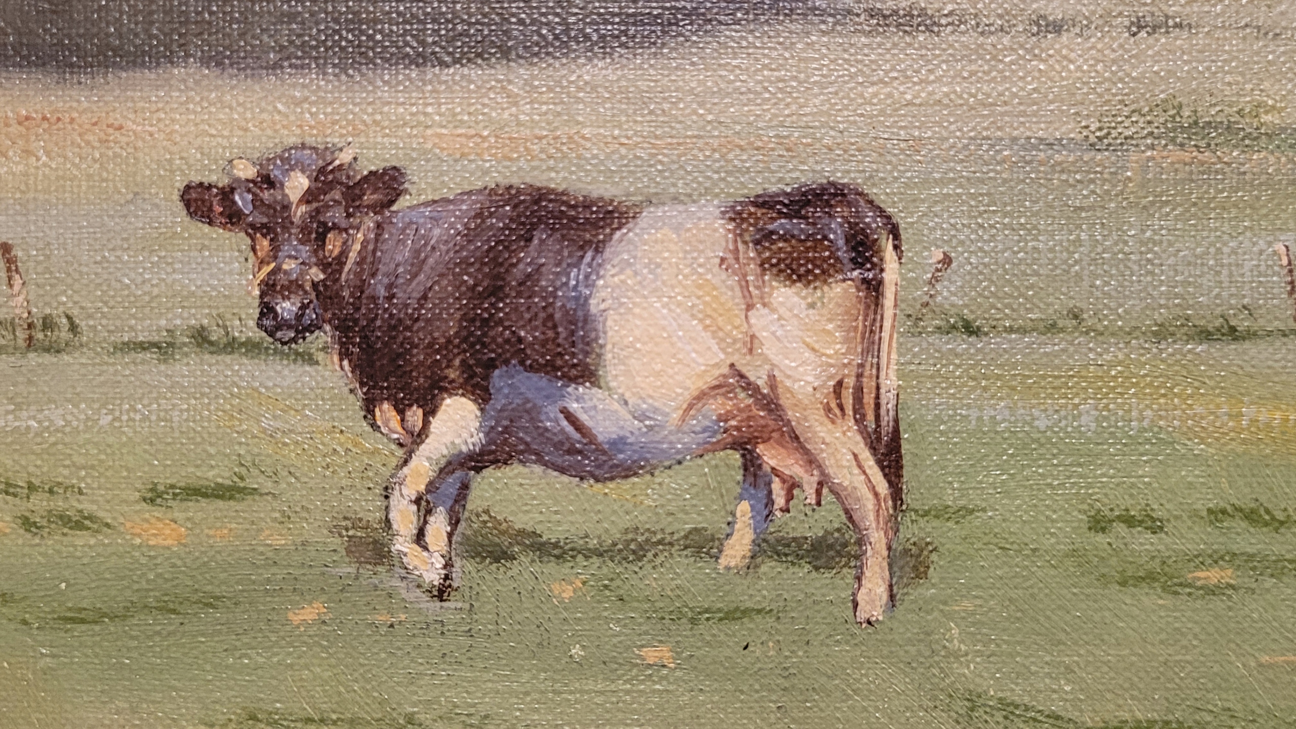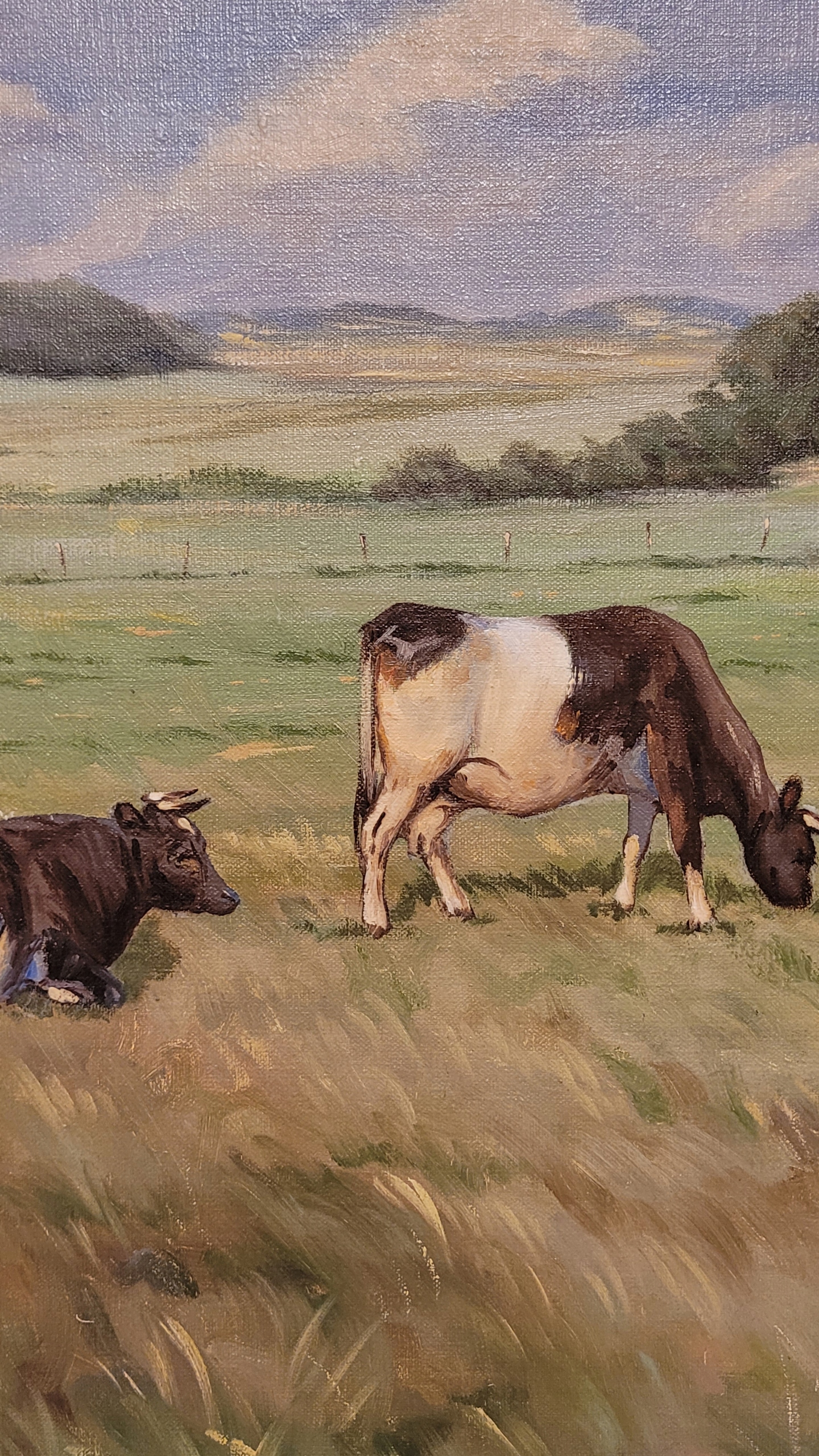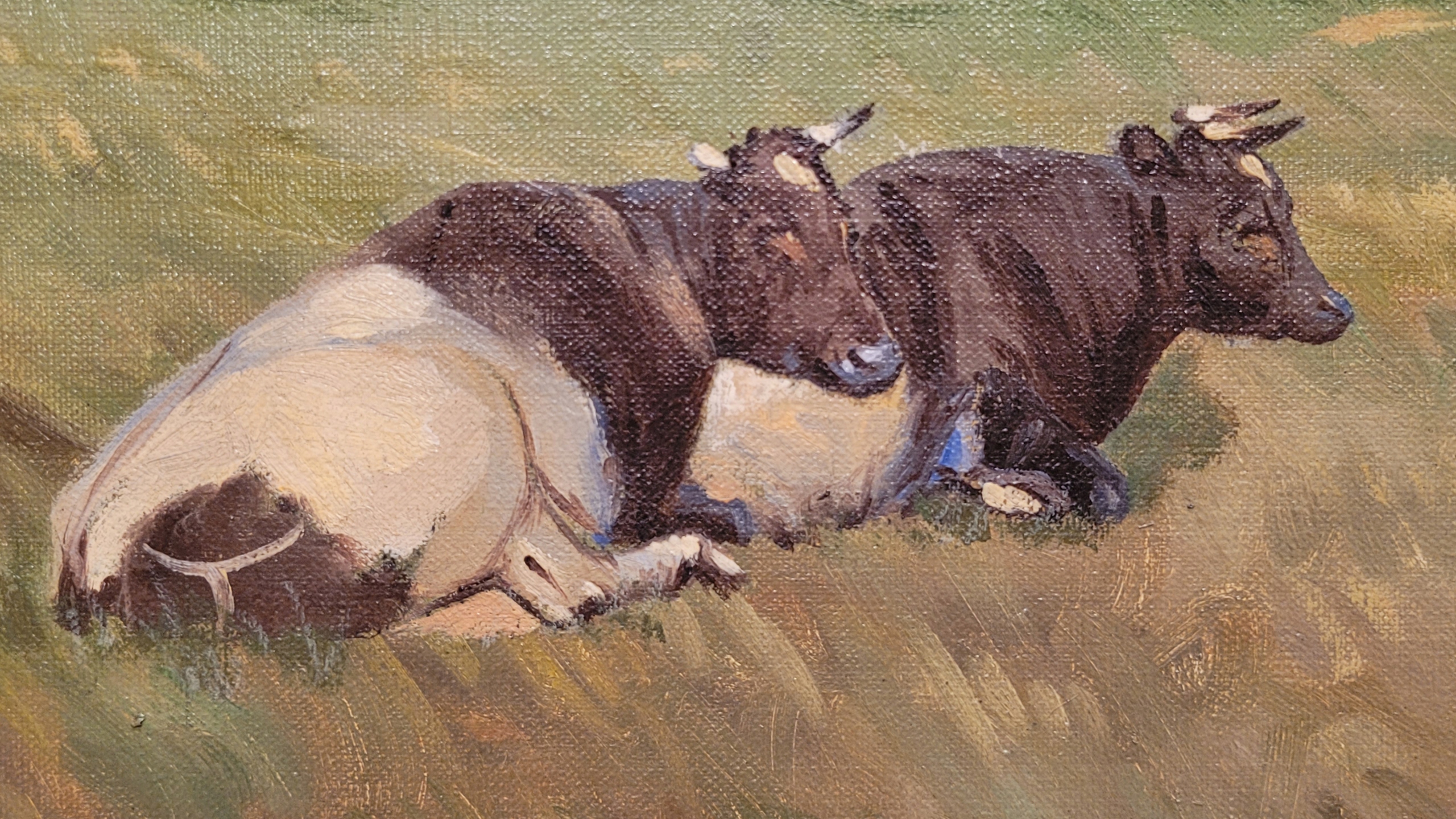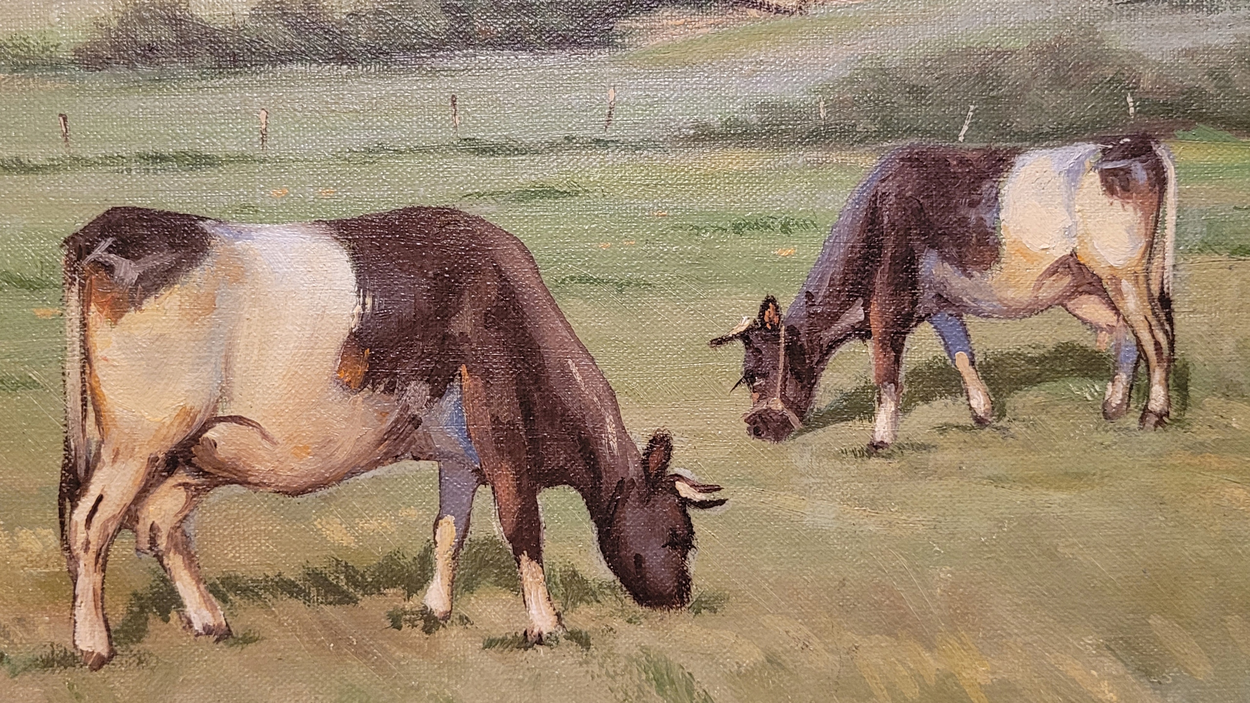 Тема продажи - красивая старая нефтяная картина "Fudges".