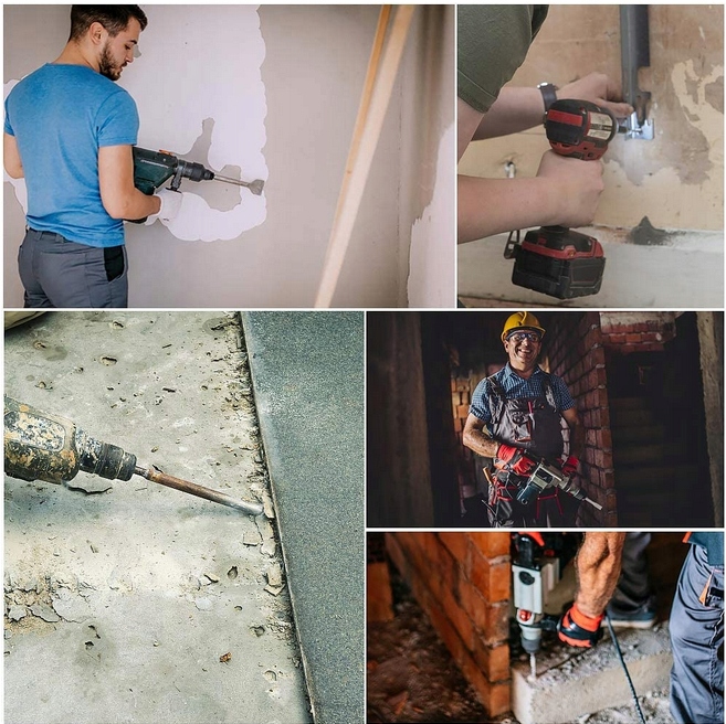 - Совместимость с ударными дрелями SDS-PLUS.