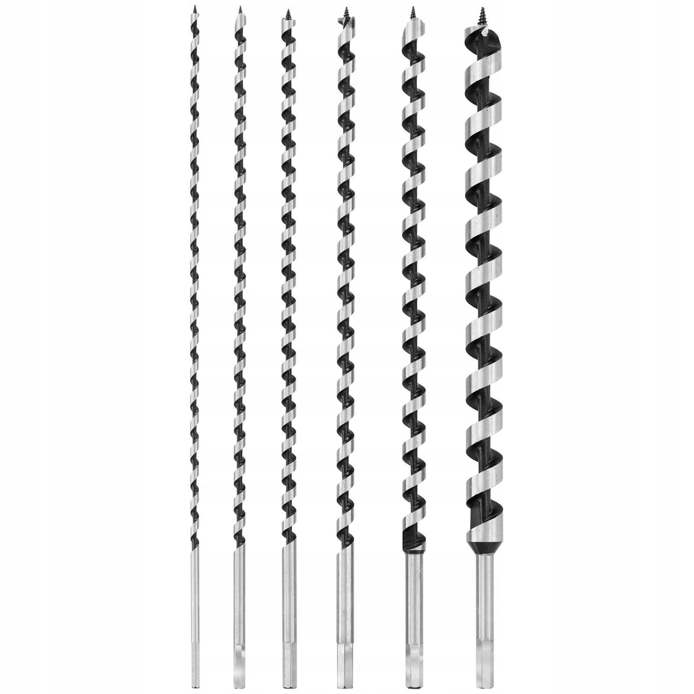 - Универсальность – 6 сверл по дереву диаметром 6, 8, 10, 12, 14, 16, 25 мм и длиной 460 мм для многих задач.