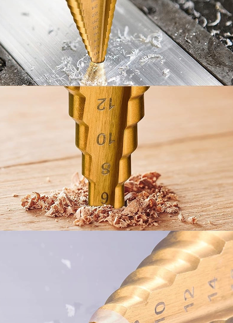 СВЕРДЛА СТУПІНЧАСТІ КОНІЧНІ ДЛЯ МЕТАЛУ ДЕРЕВА ЛИСТА ПЛАСТИКУ НАБІР 4-20 ММ